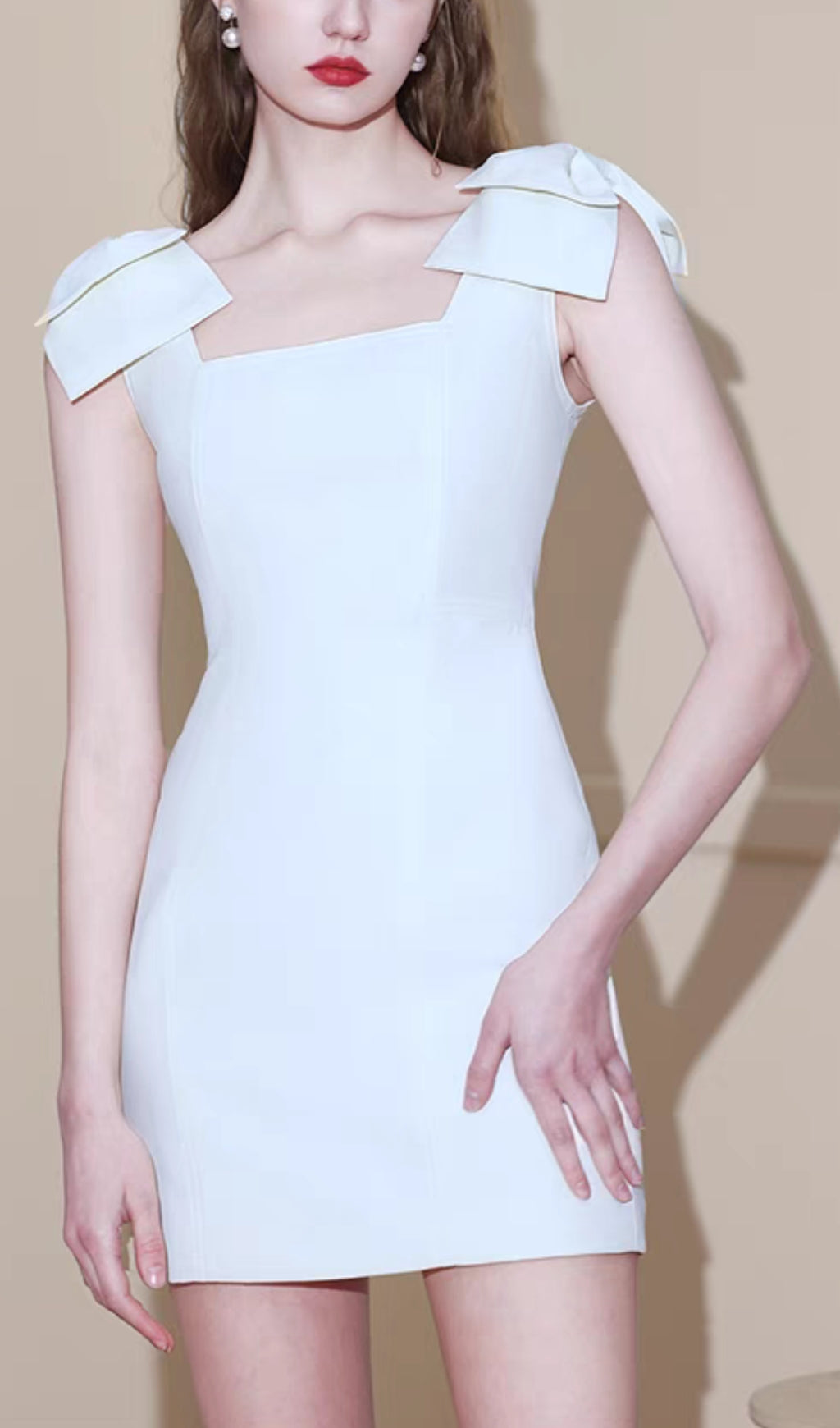 Be the center of attention in our sexy bow strap mini dress. With a sleeveless design and square collar, this dress is perfect for a night out. The solid color adds a touch of elegance. Turn heads and feel confident in this must-have dress.