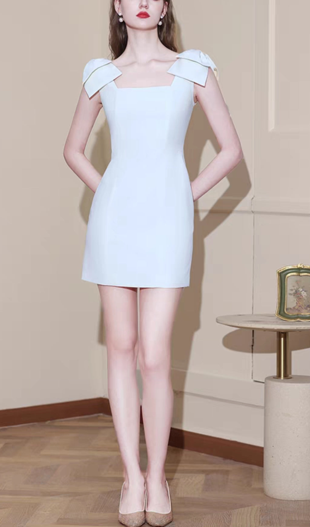 AMINAH WHITE BOW STRAP MINI DRESS