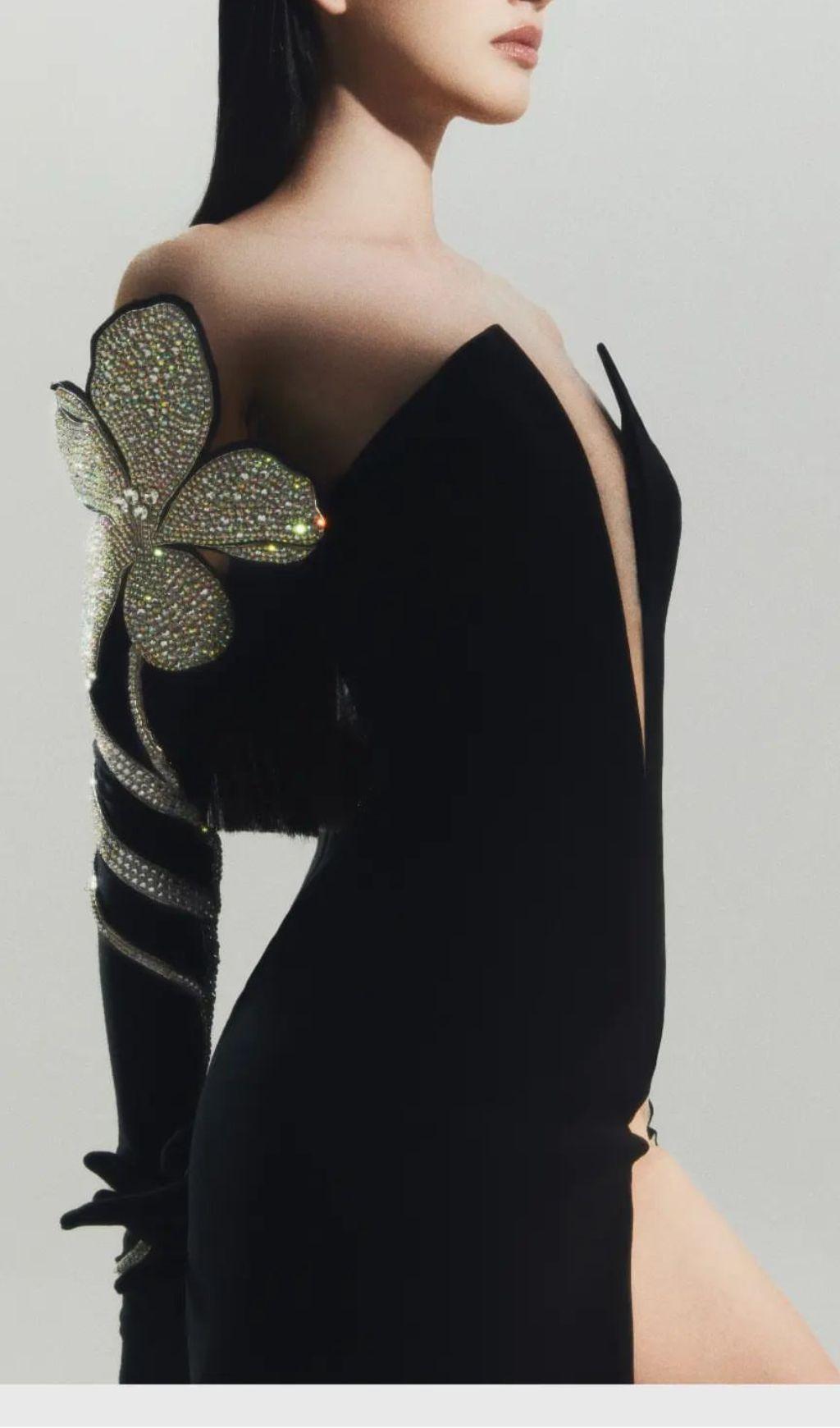 Introducing our Deep V Maxi Dress in Black, a must-have for any woman who wants to feel sexy and attractive. This dress is designed to show off your beautiful figure, with a waist-in design that accentuates your curves. The diamond detailing on the shoulders adds a touch of glamour, making you the most dazzling girl in the crowd. The pure black color adds an element of intellect and elegance, making you stand out from the rest.