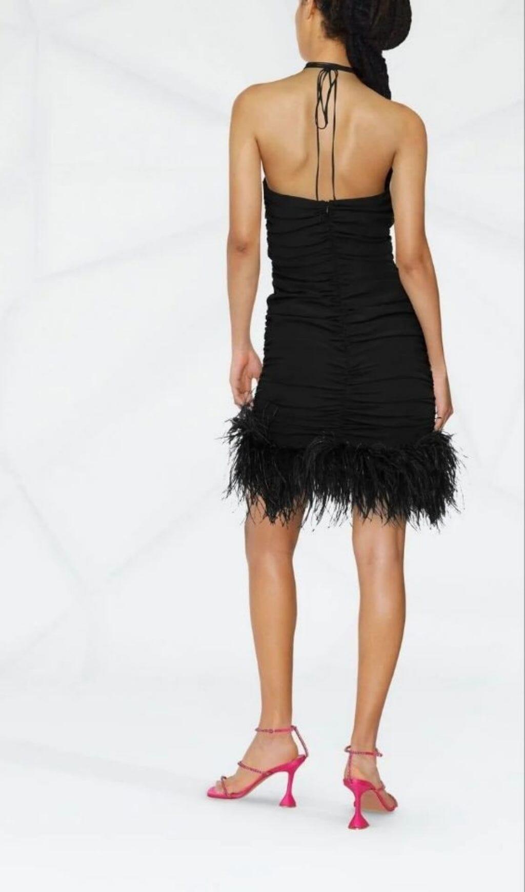 **** STRETCH OFF-SHOULDER FEATHER MINI DRESS IN BLACK