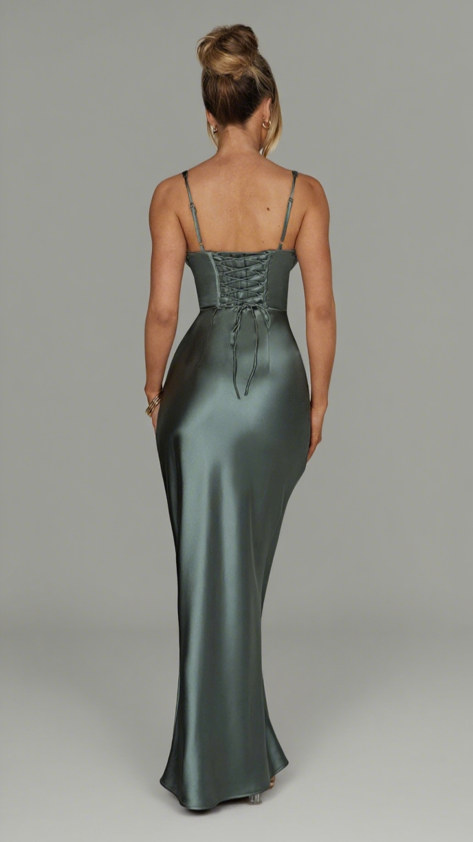 Say hello to your dream fit, Shae. This gorgeous maxi is ultra feminine, cut from our premium bias cut satin that skims over the body for a stunning silhouette. The corseted body has in built boning for a cinched waist, and pretty pleated cups with halter straps.