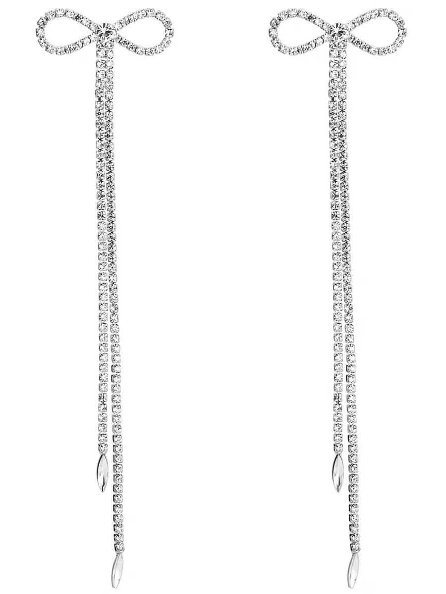 Shalini Rhinestone Bow Long Chain Earrings