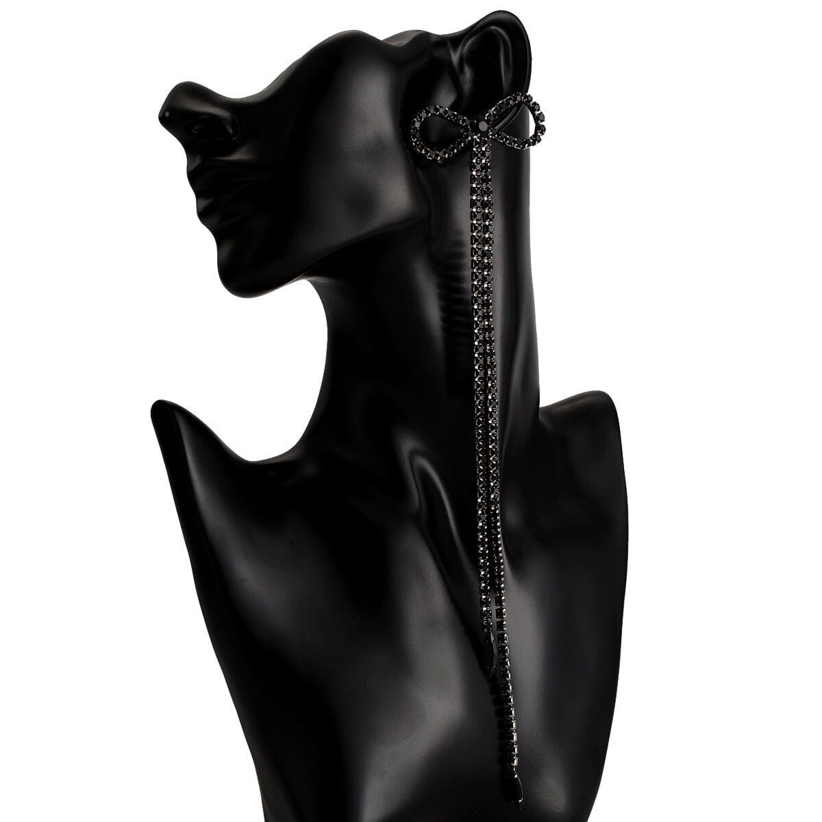 RHINESTONE BOW LONG CHAIN EARRINGS