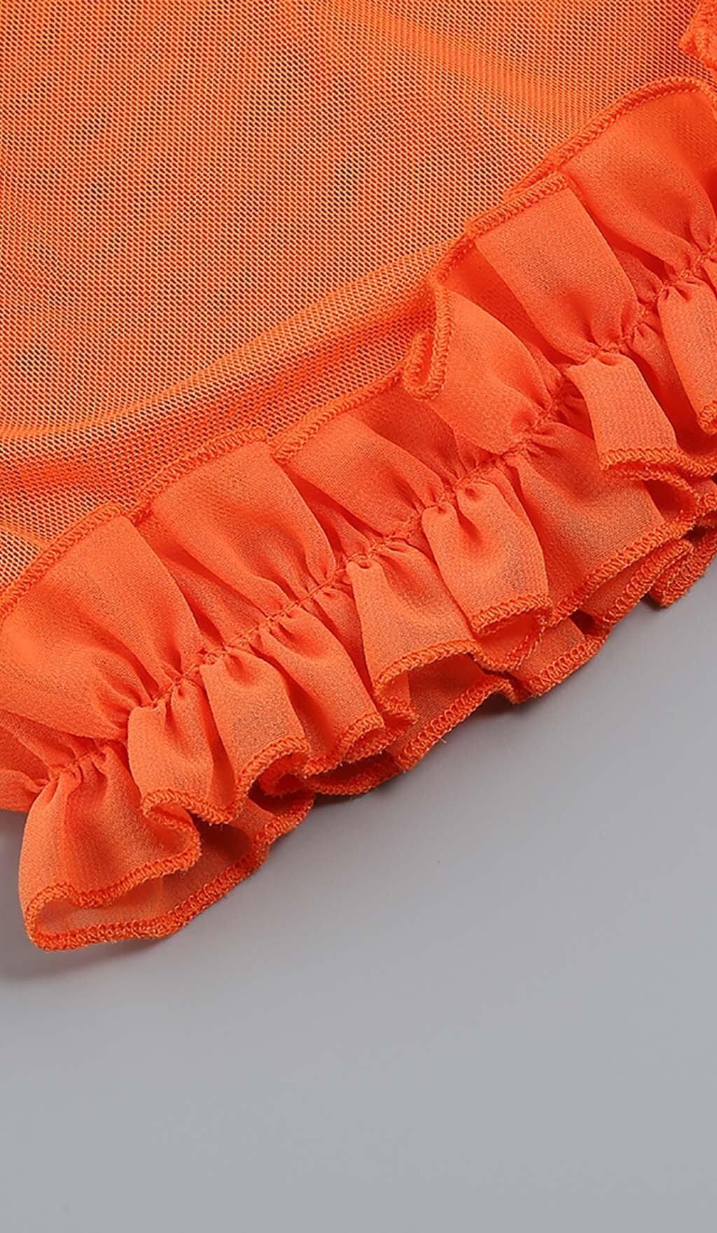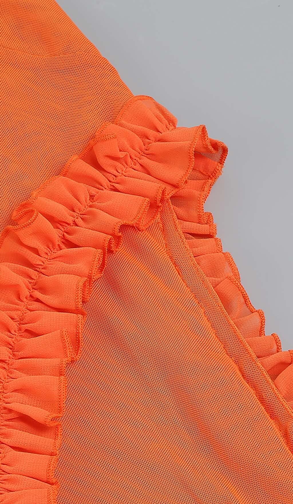 SHEER RUFFLED MAXI DRESS IN ORANGE
