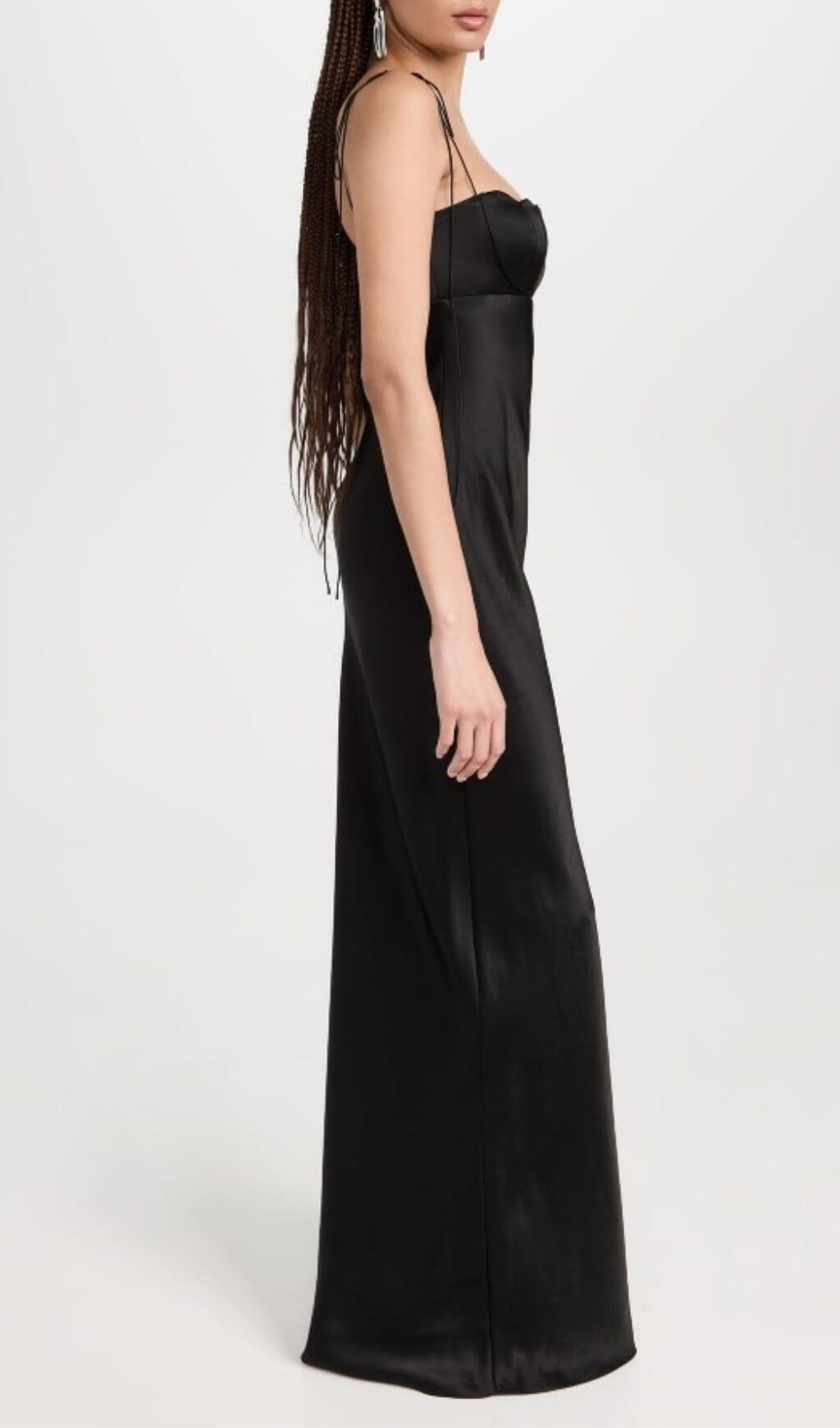 An exquisite addition to any wardrobe, this BLACK TULIP SATIN MAXI DRESS is designed to make a bold fashion statement. Crafted from luxurious satin, it features a delicate tulip pattern that gives a hint of sophistication. Make a lasting impression in this timelessly elegant dress.