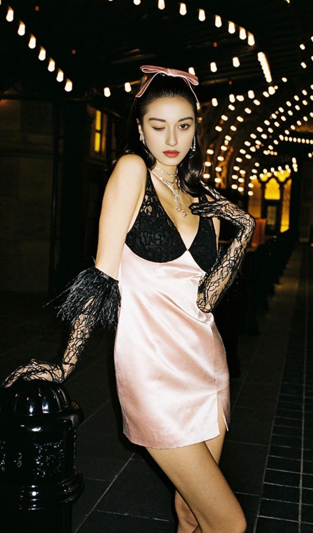 LACE GLOVES PINK PATCHWORK MINI DRESS