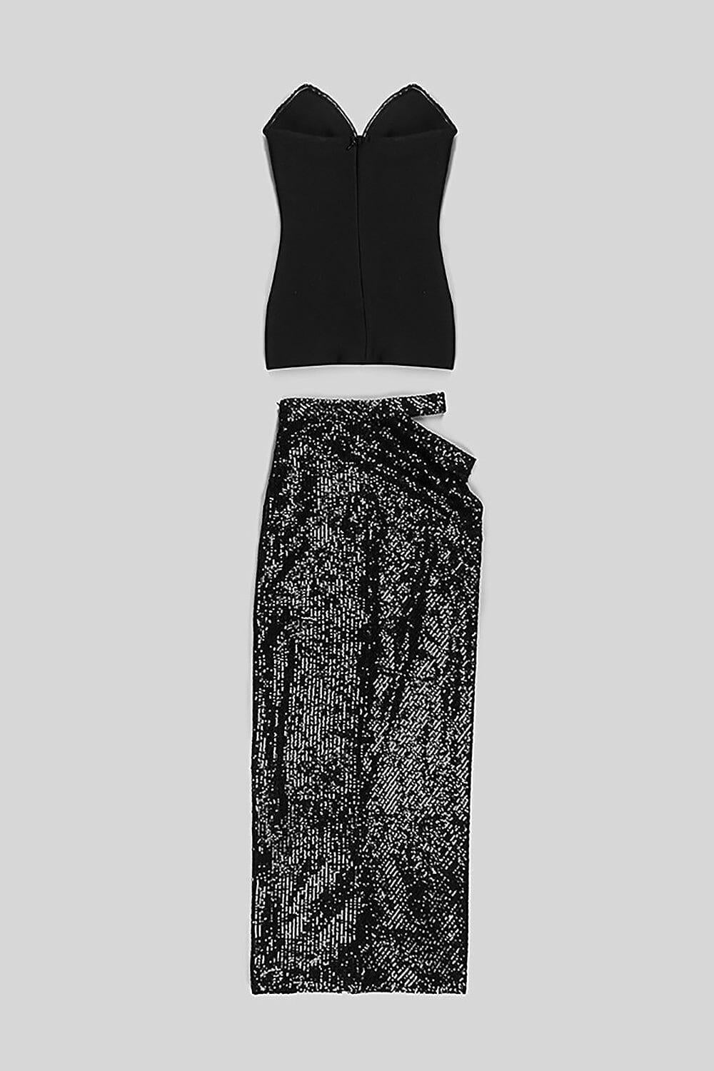 SHINY SEQUINS STRAPLESS TOP SPLIT SKIRTS