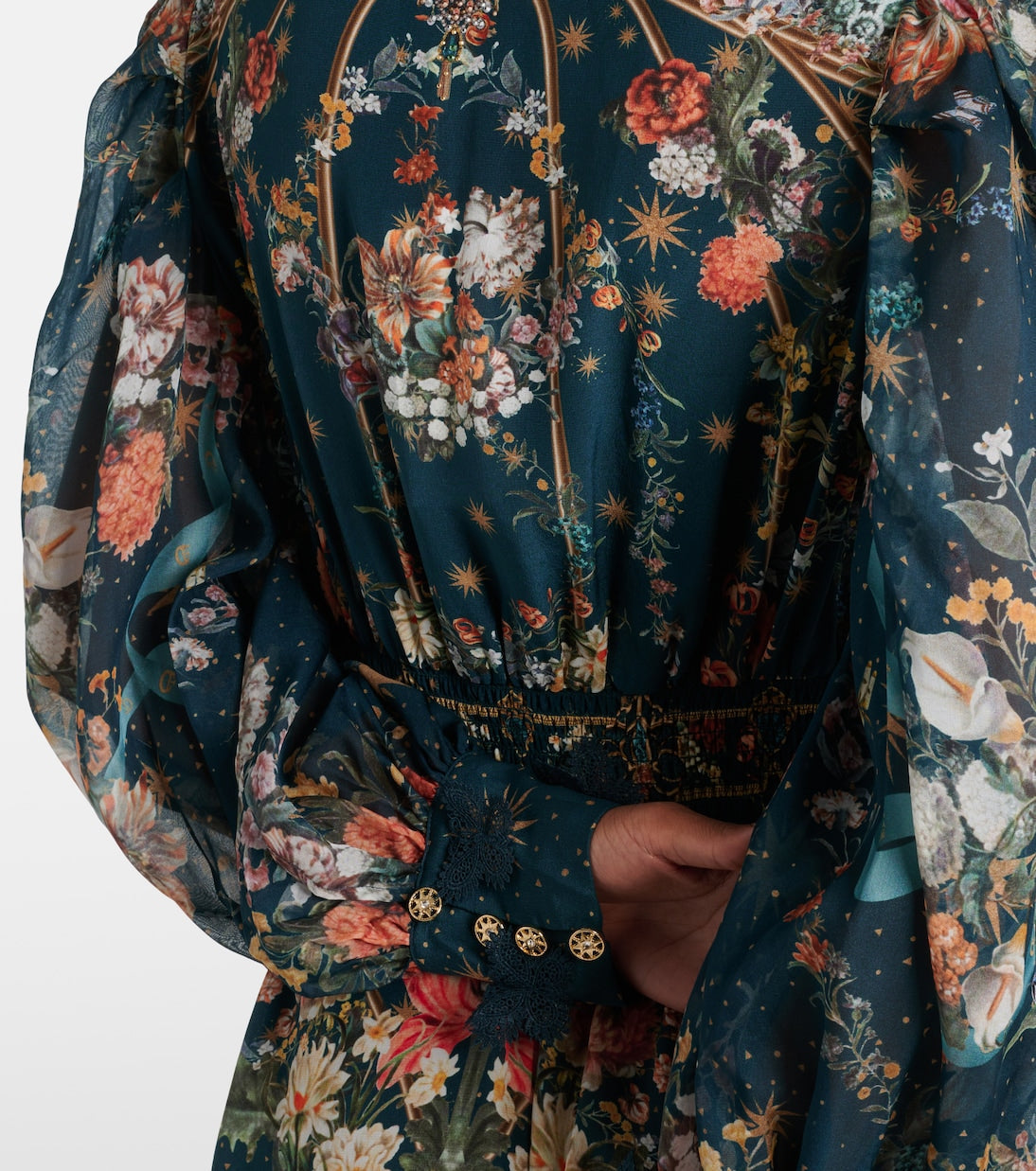 SHIRLEY EMBELLISHED FLORAL SILK CRÊPE MINI DRESS