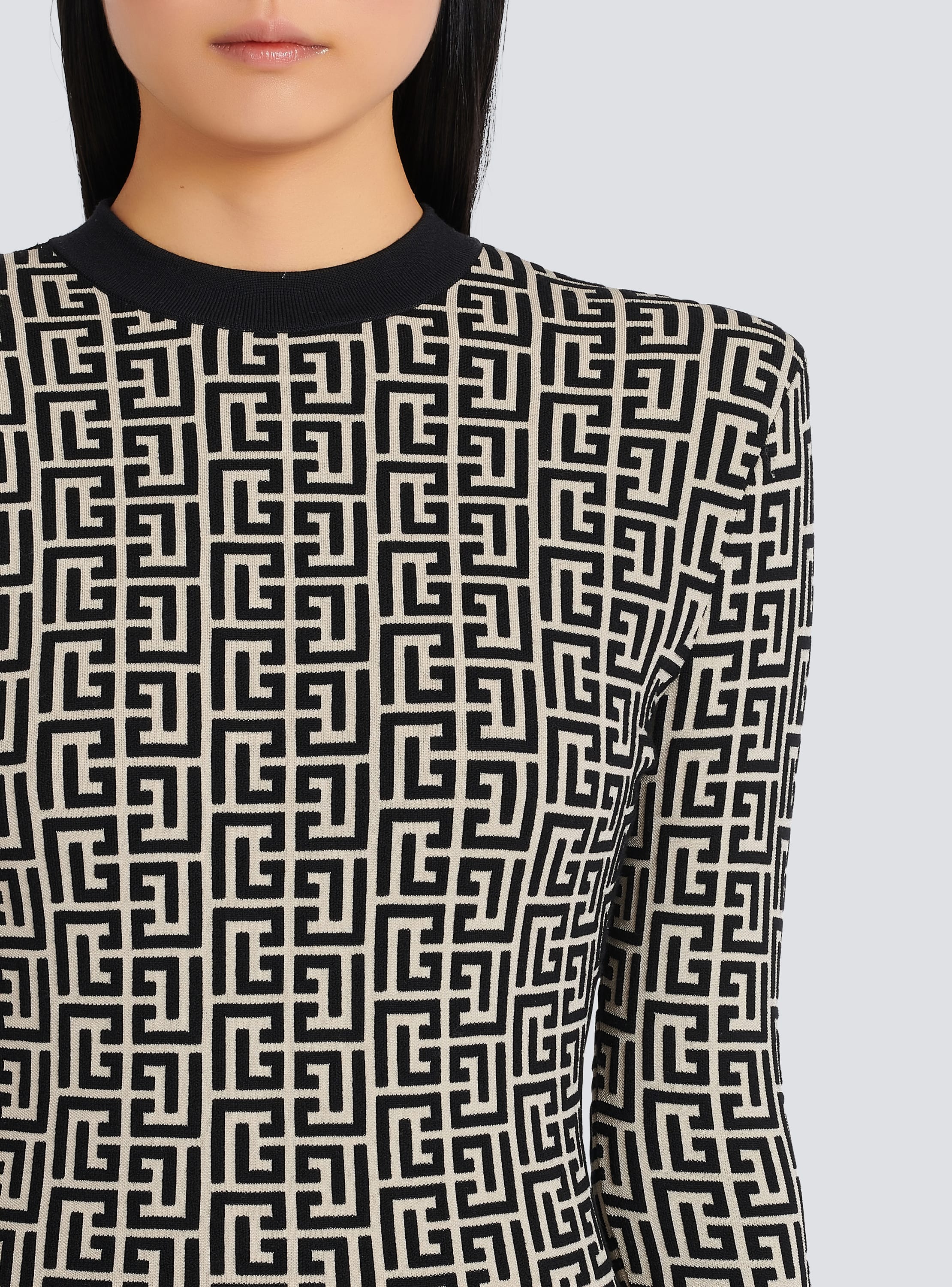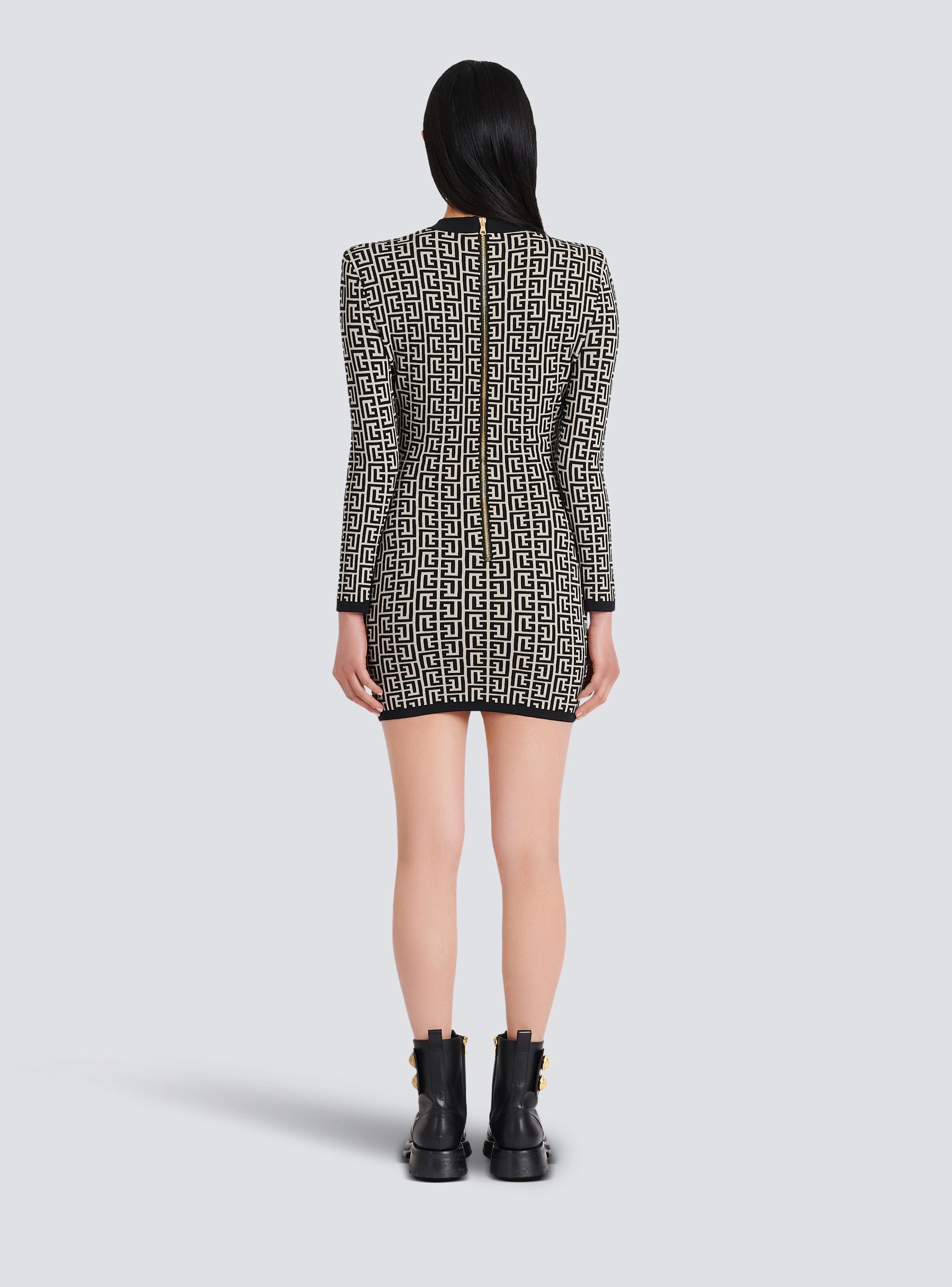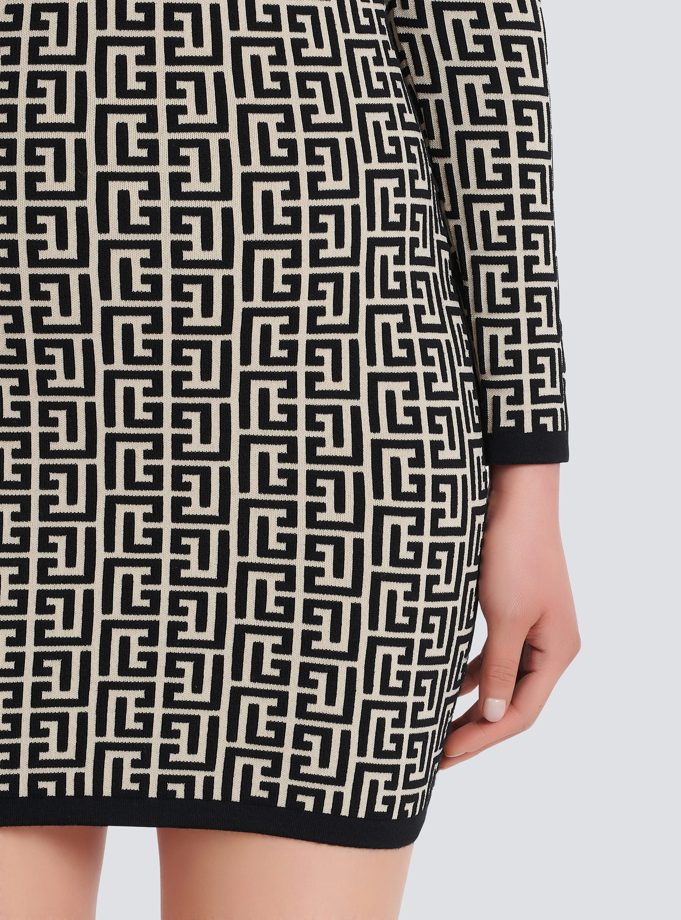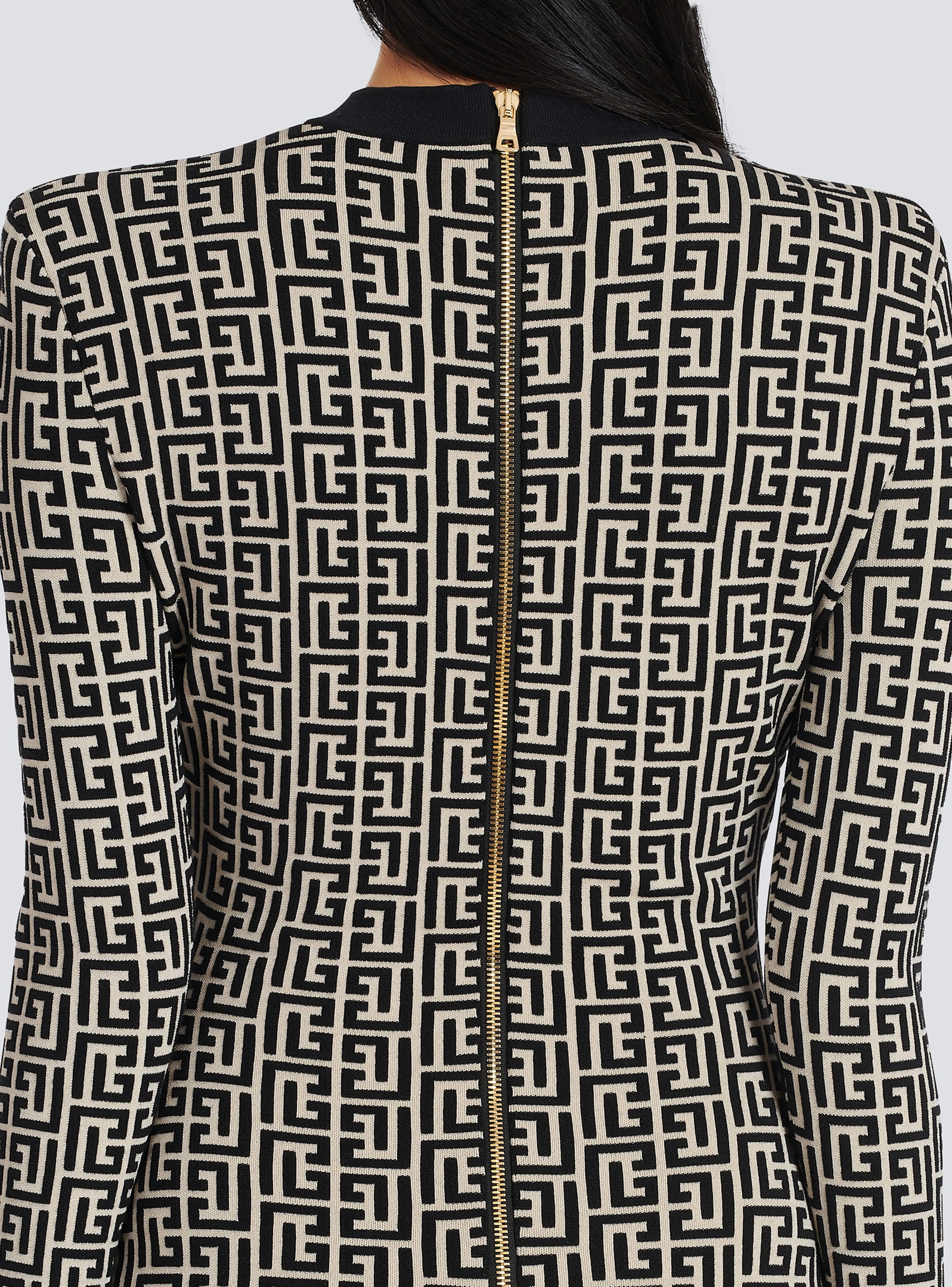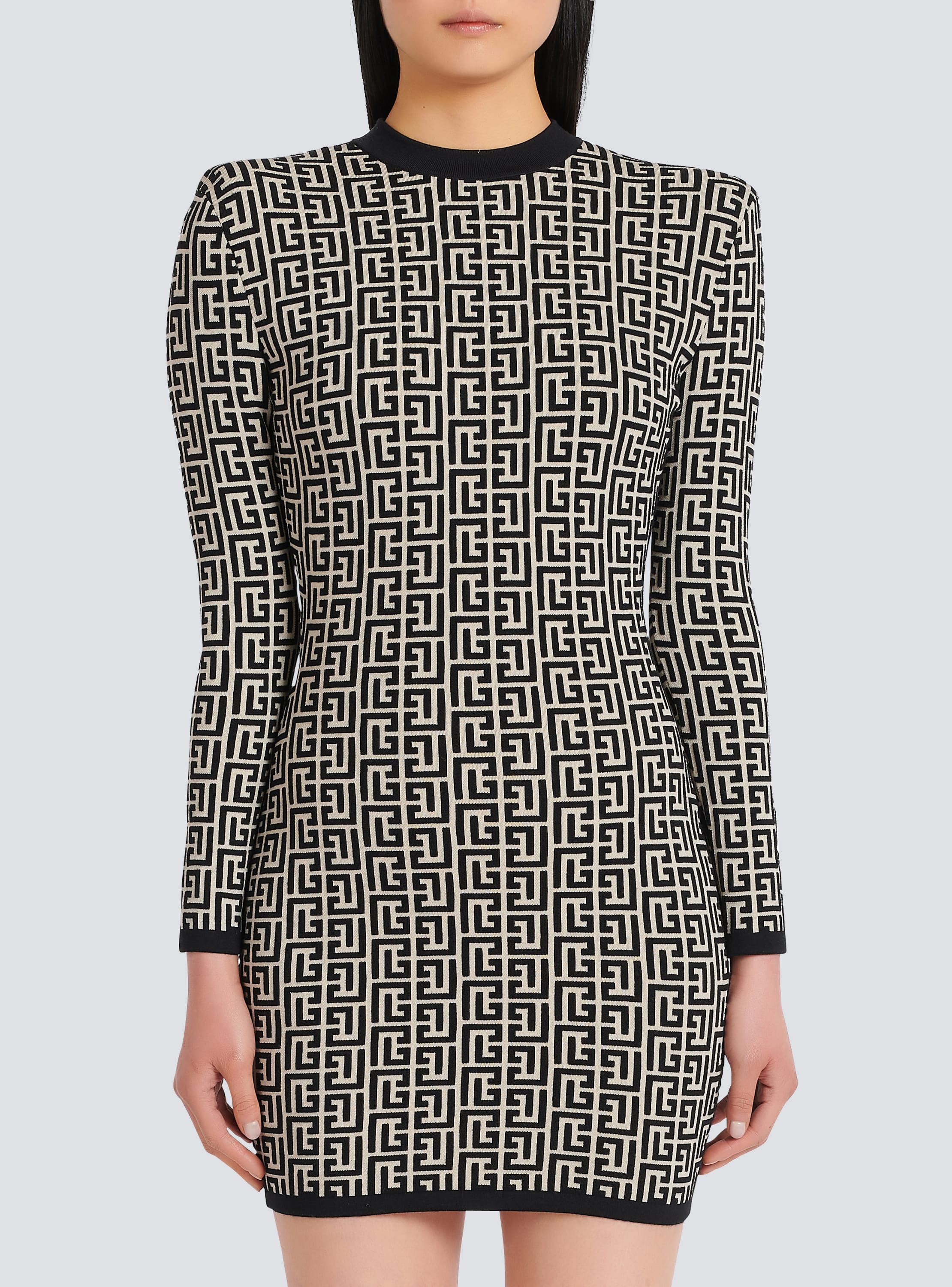 Short bicolor jacquard mini dress with monogram