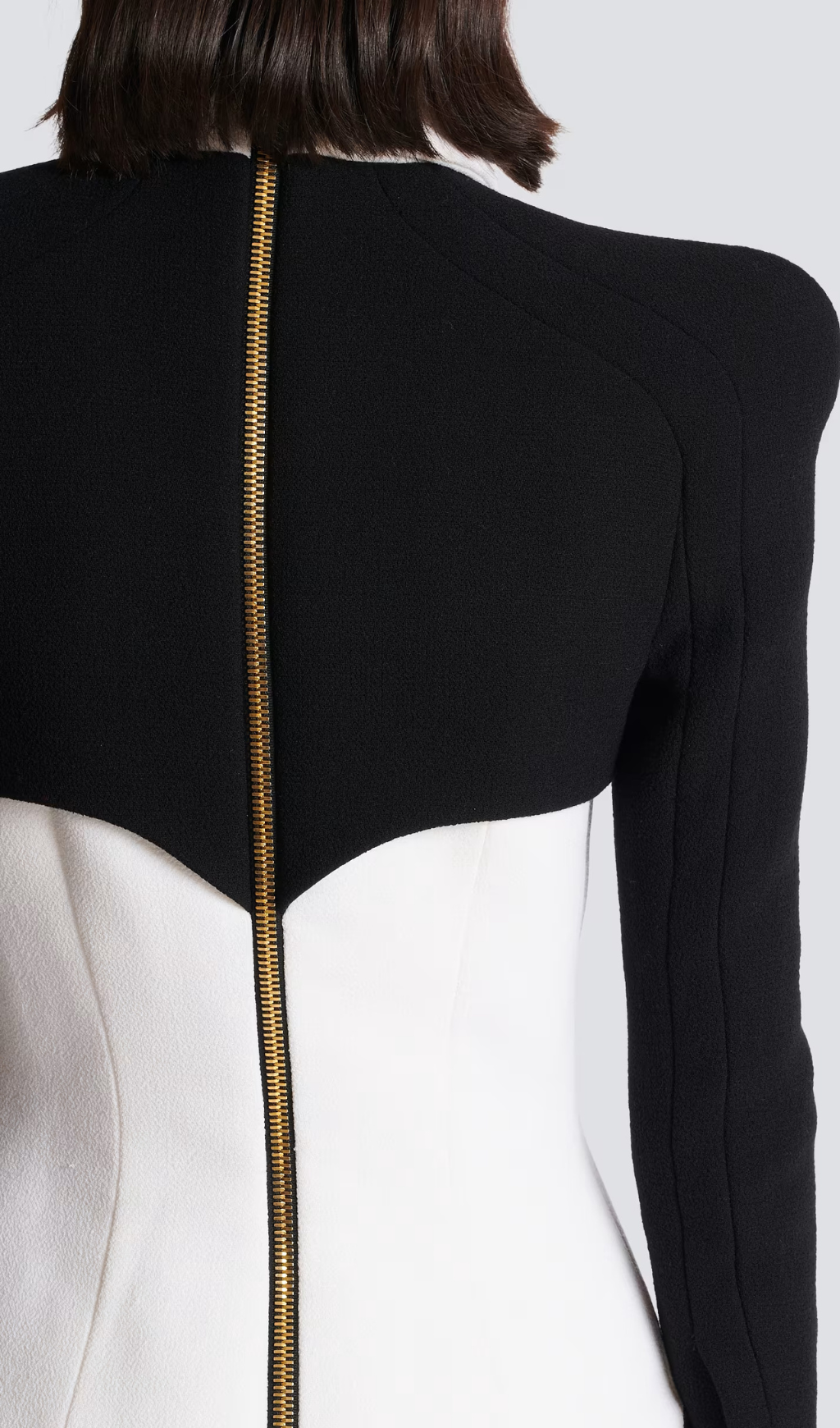 • Layered Spencer effect in contrasting crepe