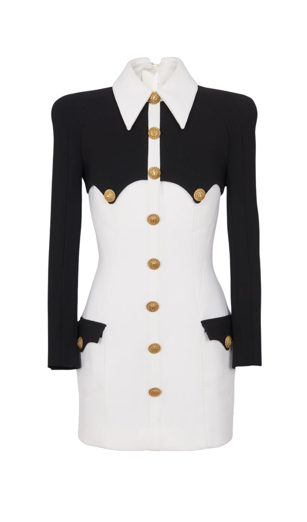 • Tailored neckline, pointed collar