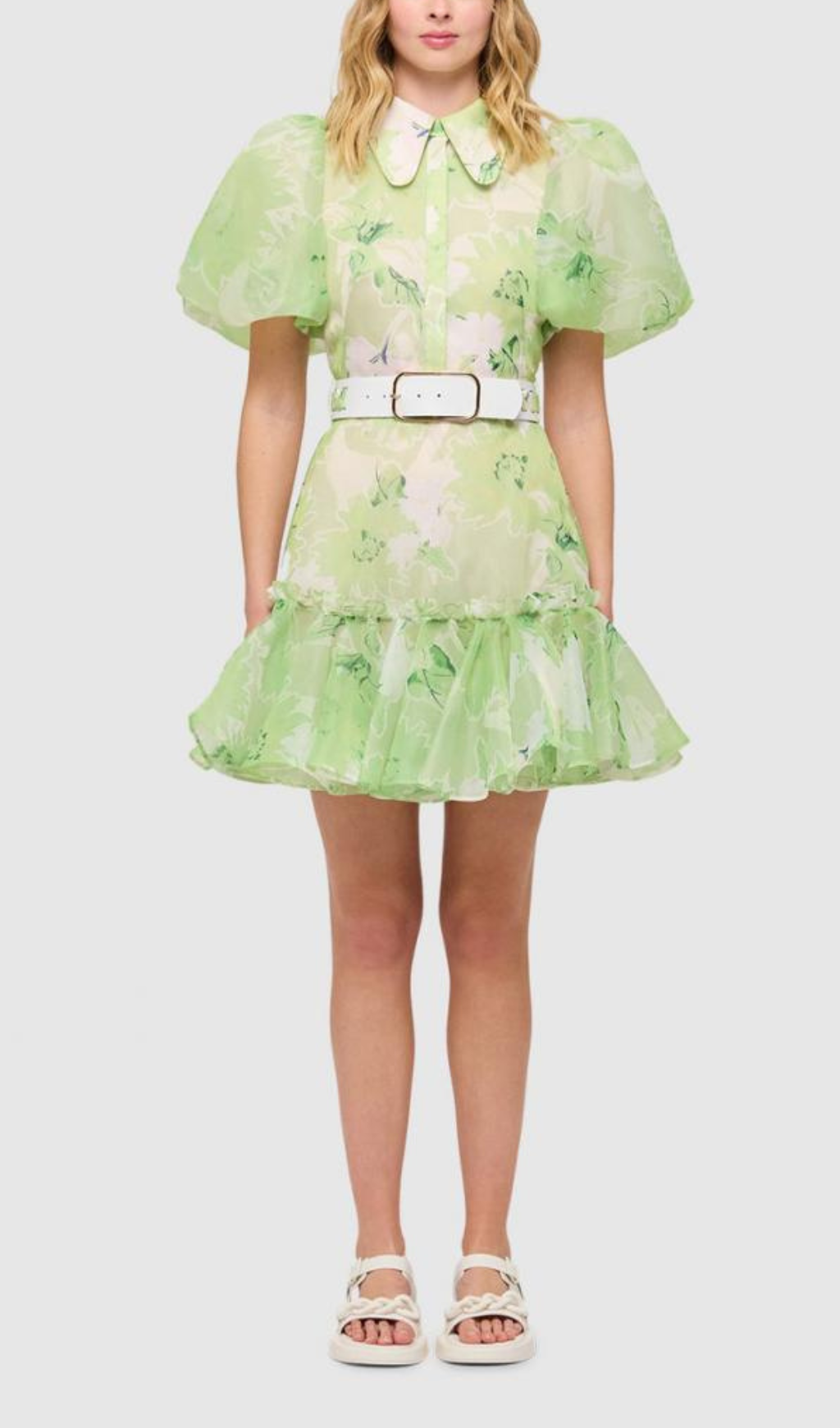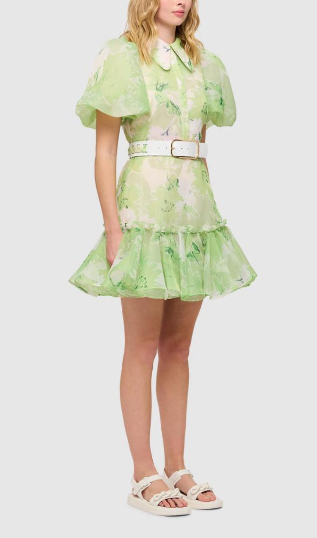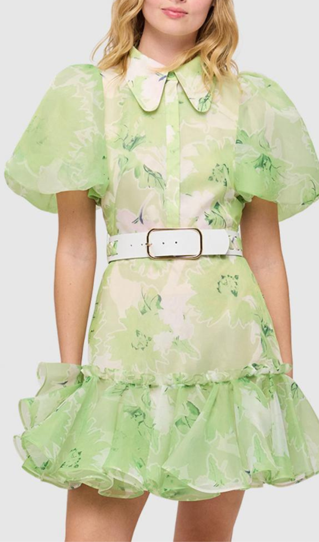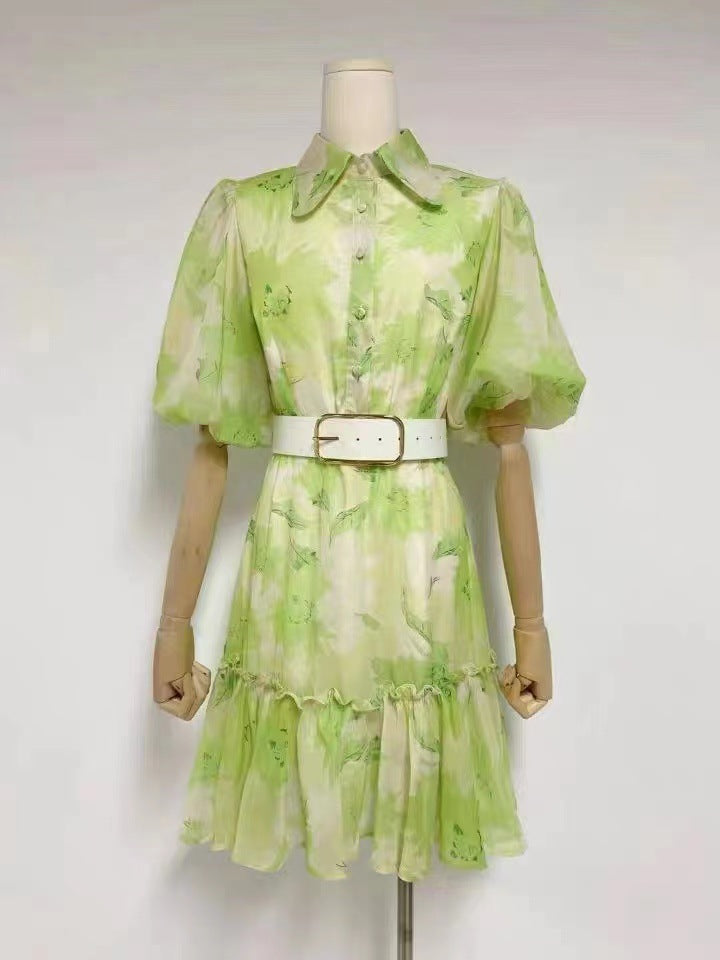 Experience elegance and sophistication in this stunning jasmine print mini dress. Crafted from luxurious sage-hued fabric, the short sleeve silhouette adds an effortless stylish touch for day-to-night looks with a timeless allure. A must-have for your wardrobe.