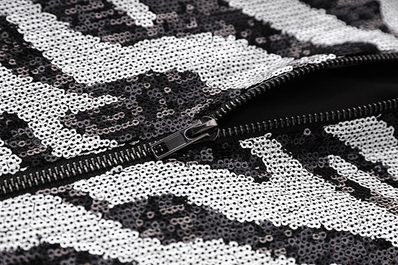Short two-tone zebra sequin mini dress