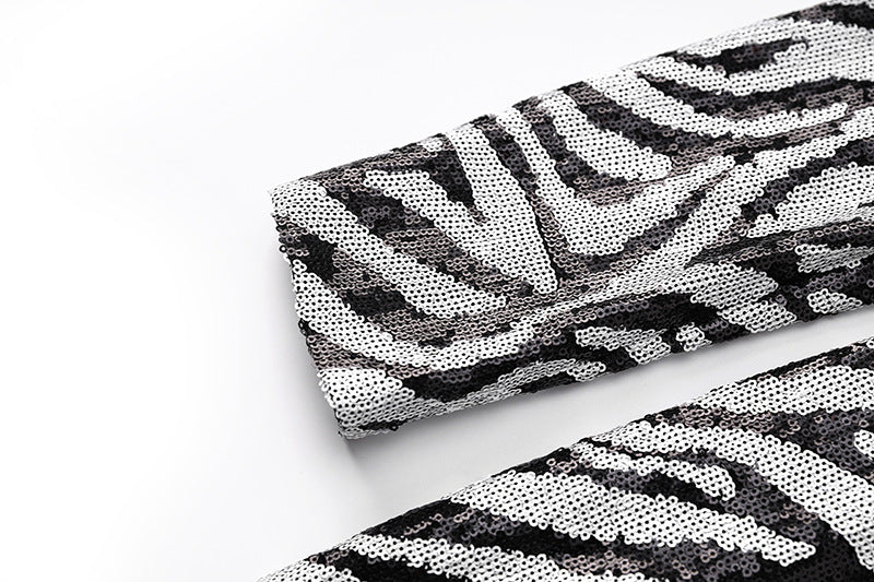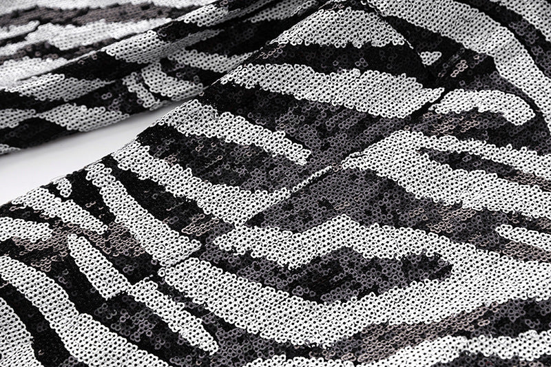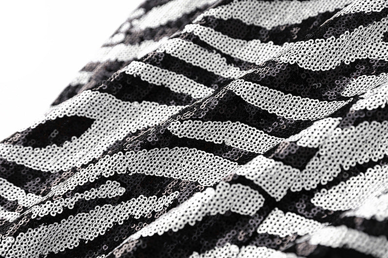 The sequin design adds a touch of glamour while the two-tone zebra pattern makes a unique statement. Perfect for making a stylish entrance at any event.