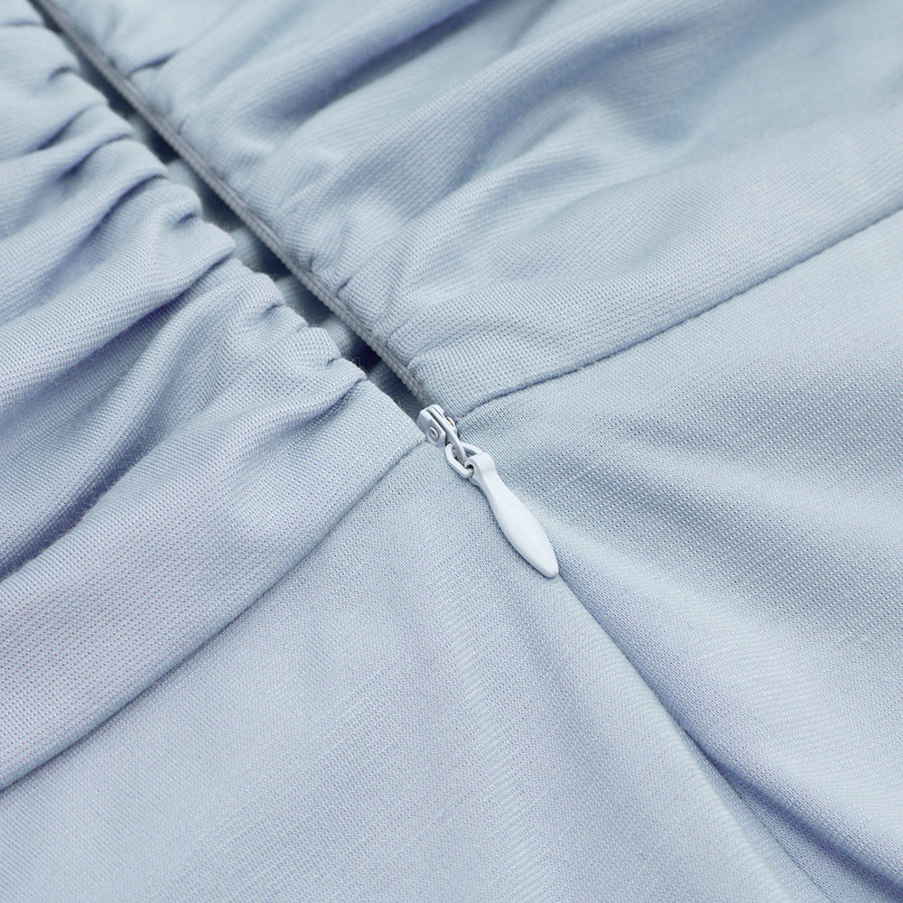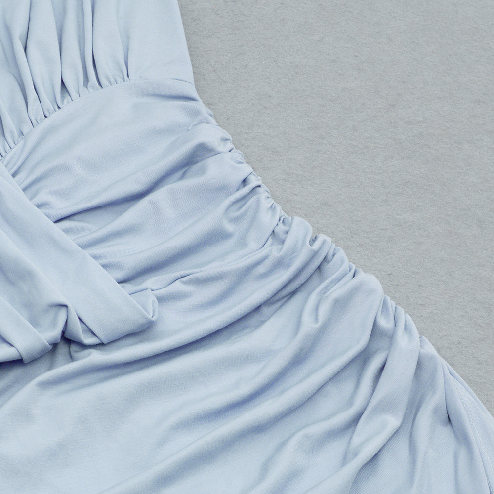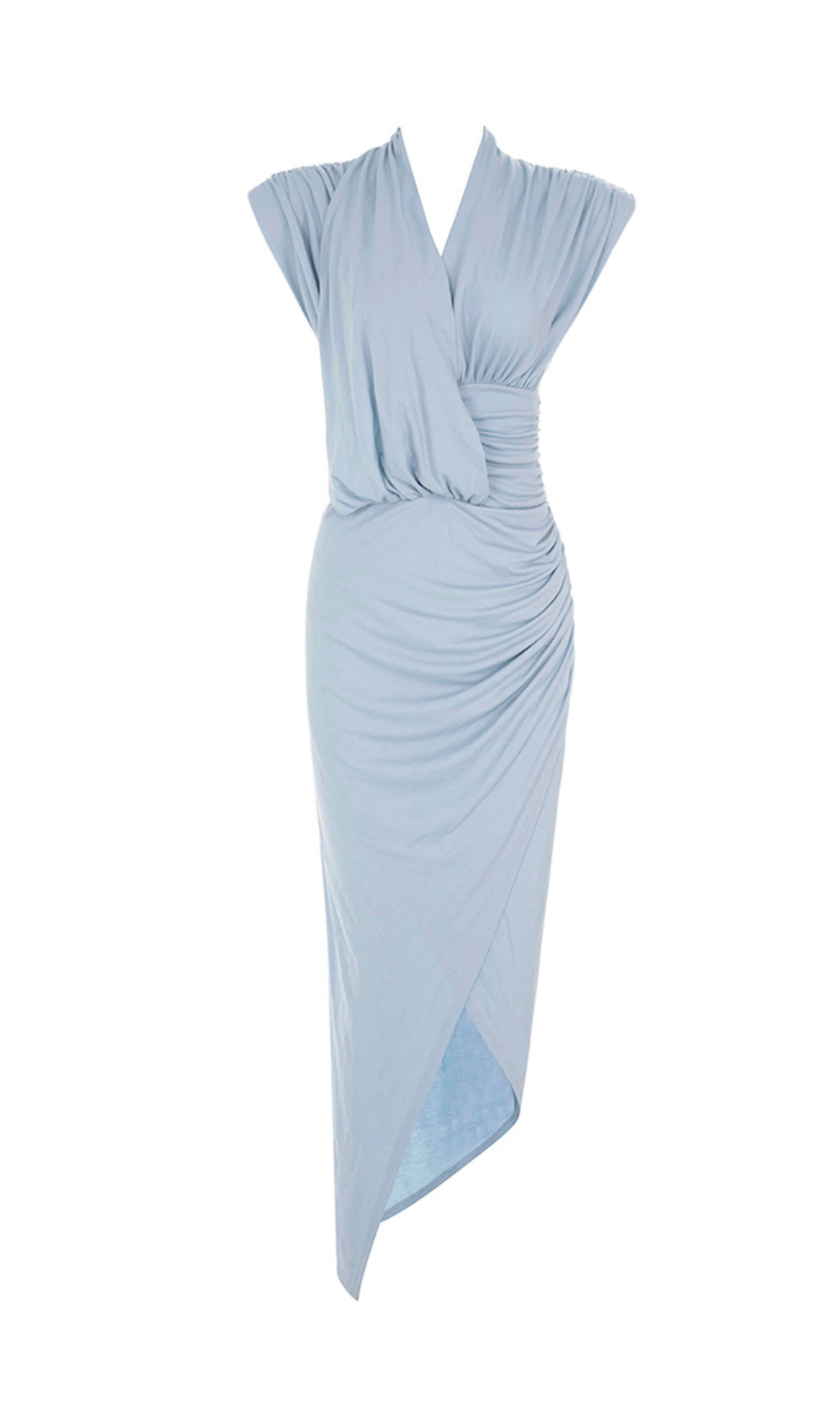 SHOULDER PADS RUFFLED V-NECK ASYMMETRIC HEM DRESS