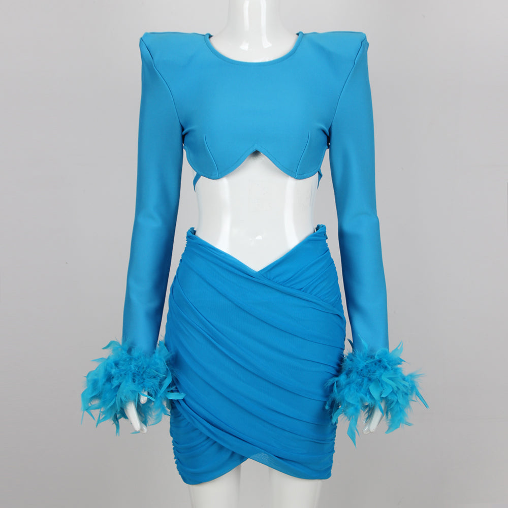 Are you looking for a sexy but sweet outfit? Then this outfit is one you can't miss. A plain PINK blazer frames your perfect bust. The back is tied with a belt around the waist, showing your sexy back at the same time, highlighting your graceful waist line. Shoulder pads at the shoulders not only give you more swagger, but also give you supermodel-like proportions, making your face and head look smaller. We adorn the wrist with a lot of soft feathers, with your hands and feet, sending out a charming woman. The dress part of the cross pleats and the design of the buttocks, so that your figure shows the hourglass shaped convex back, full of charm.