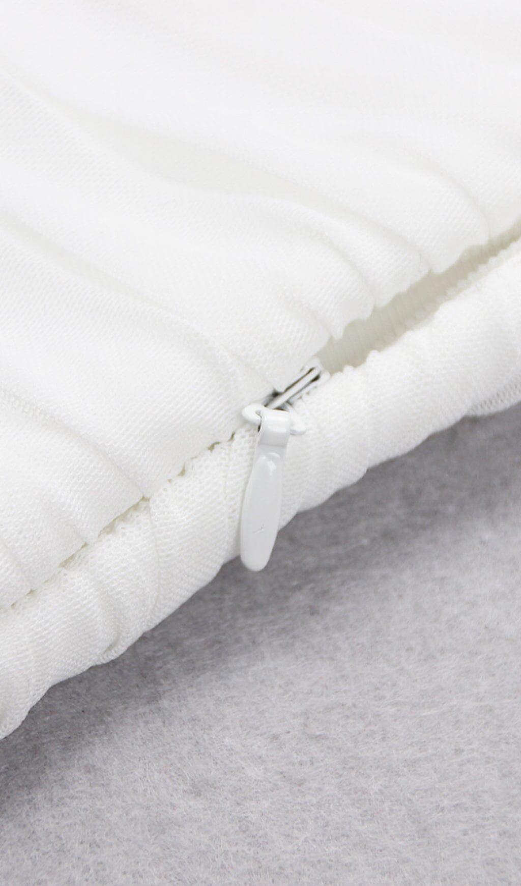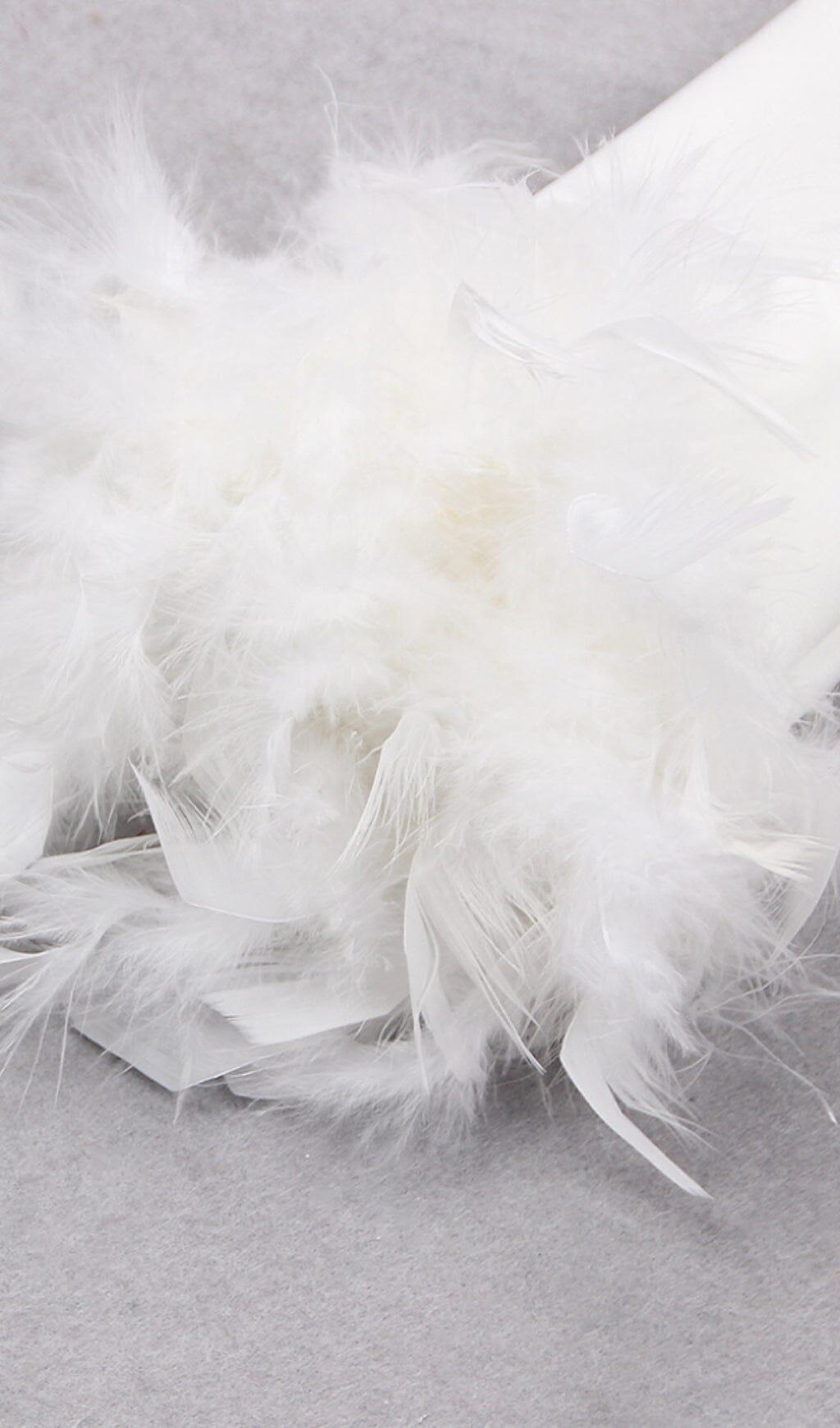 SHOULEDR PAD WAIST BARING FEATHER BLOUSE PLEATED DRESS IN WHITE