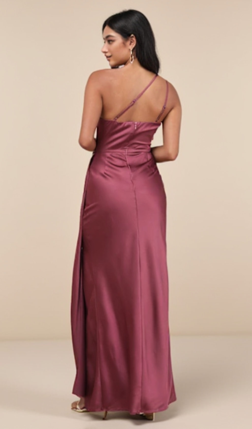 Signature Elegance Mauve Purple Satin One-shoulder Maxi Dress