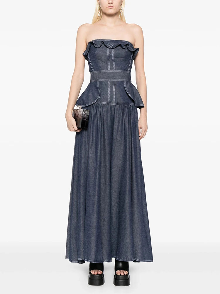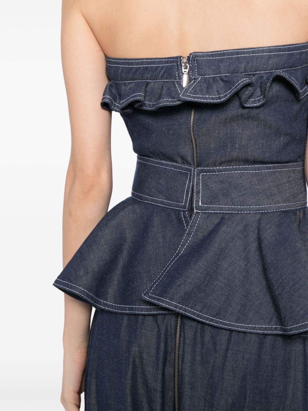 SIGRID PEPLUM-WAIST DENIM JUMPSUIT IN NAVY BLUE