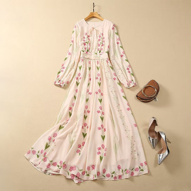 Made from luxurious silk fabric, this dress features a stunning floral print that will turn heads. Perfect for any special occasion, you'll feel confident and beautiful in this dress.