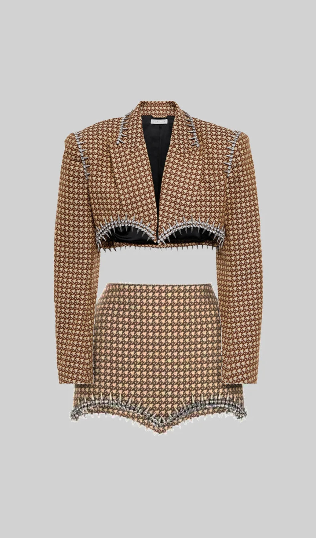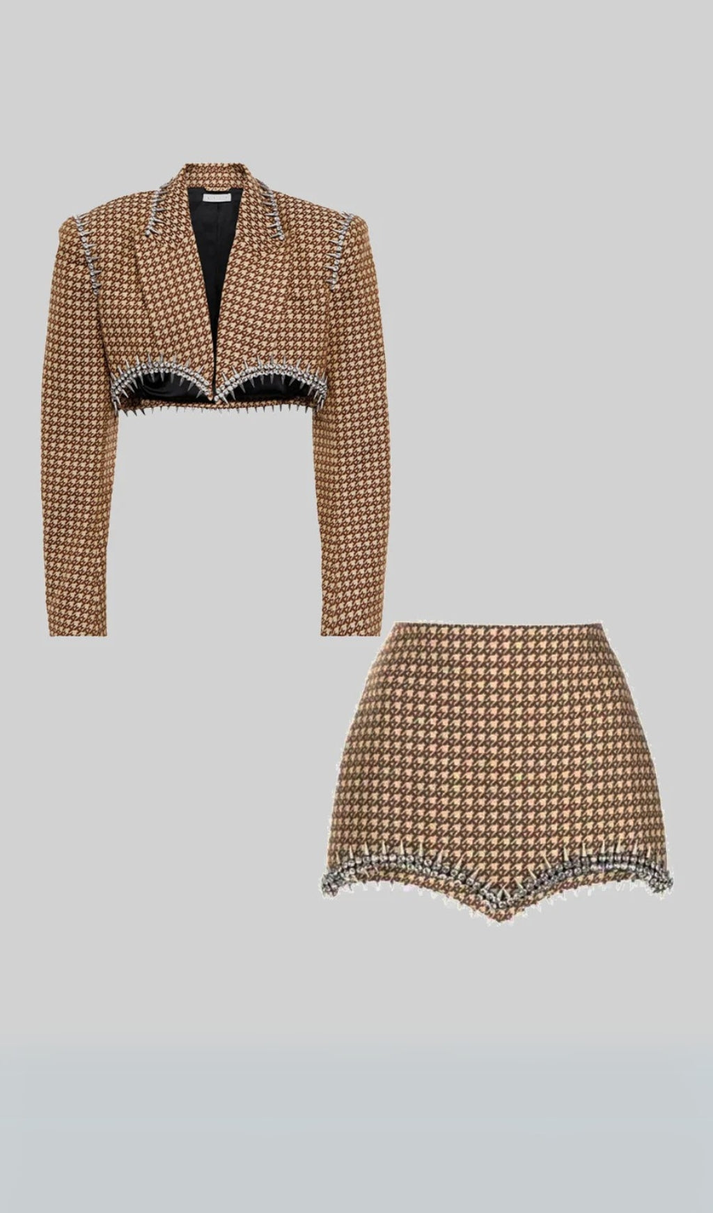 Introducing our Silver Spikes Elegant Two Piece Set, perfect for a night out or special occasion. With sleek silver spikes and an elegant design, this set is sure to make a statement. Look stylish and stand out from the crowd with this set that adds a touch of edginess to any outfit.