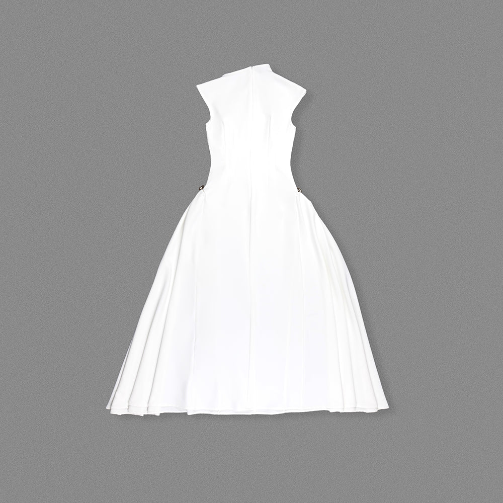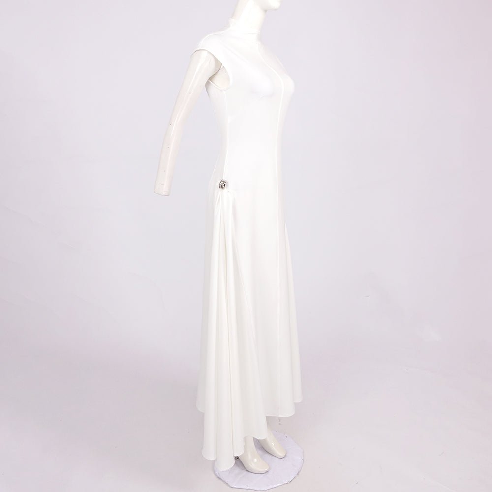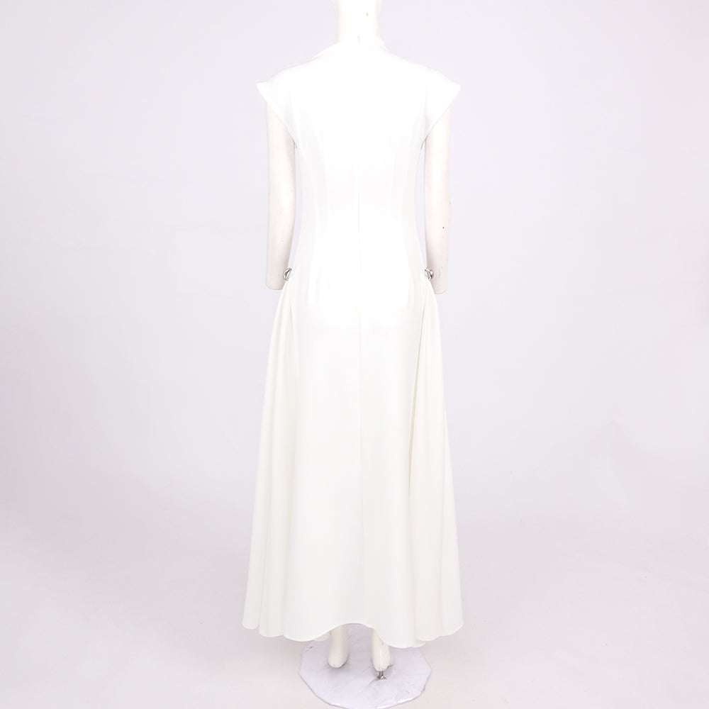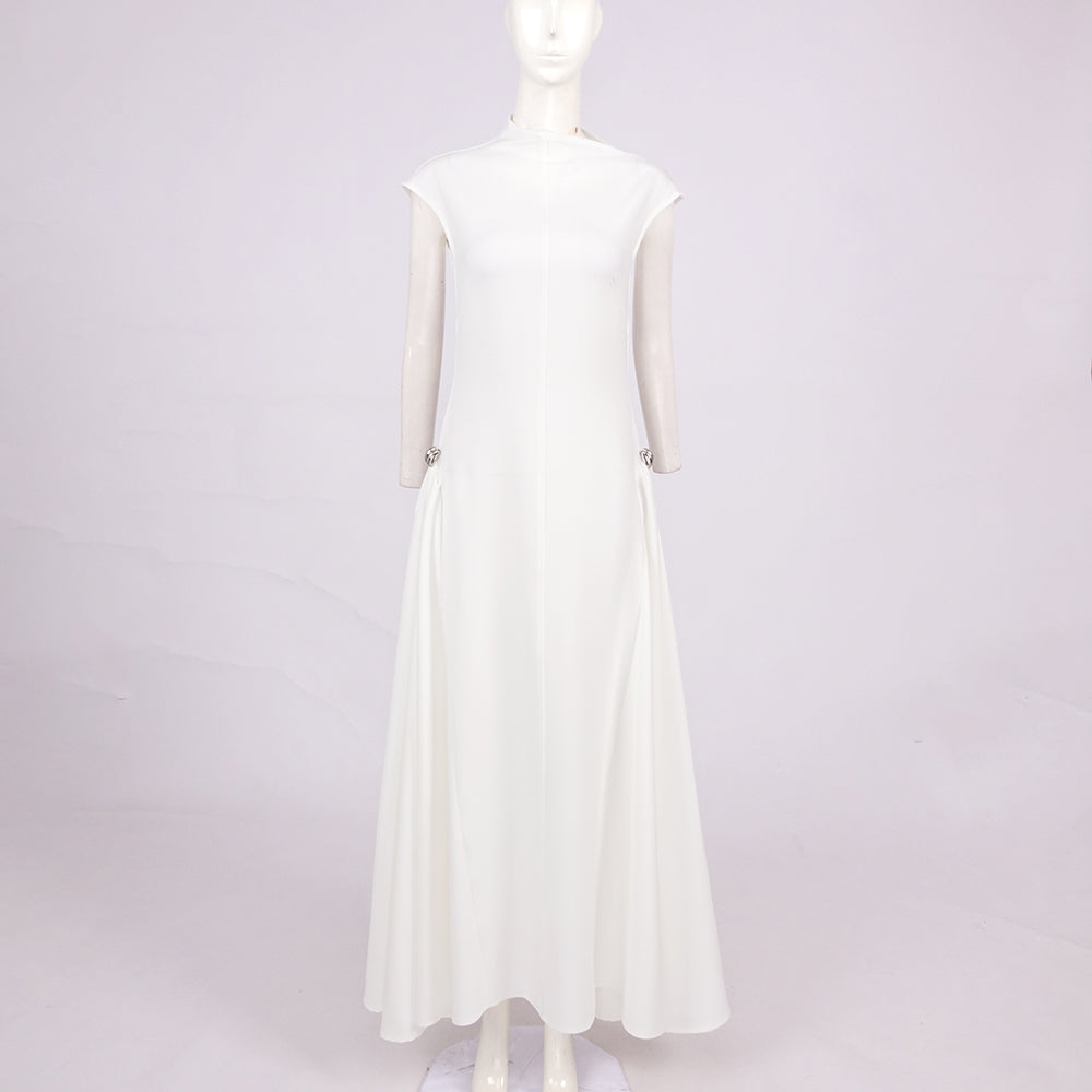 • Details: There are exquisite decorations on both sides of the waist, which could be rhinestones or other ornaments. These add highlights to the simple white dress and enhance its sense of delicacy. The skirt flares out naturally in an A - line shape, increasing the dress's fluidity and sense of layering. This style is suitable for formal dinners, business events, and other occasions.