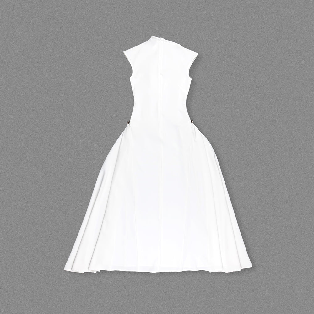• Style: It adopts a sleeveless stand - collar design. The stand - collar adds a sense of dignity, while the sleeveless design exposes the arm lines, presenting a simple and elegant look. The overall lines are smooth, and the form - fitting cut conforms to the body curves, highlighting an elegant posture.