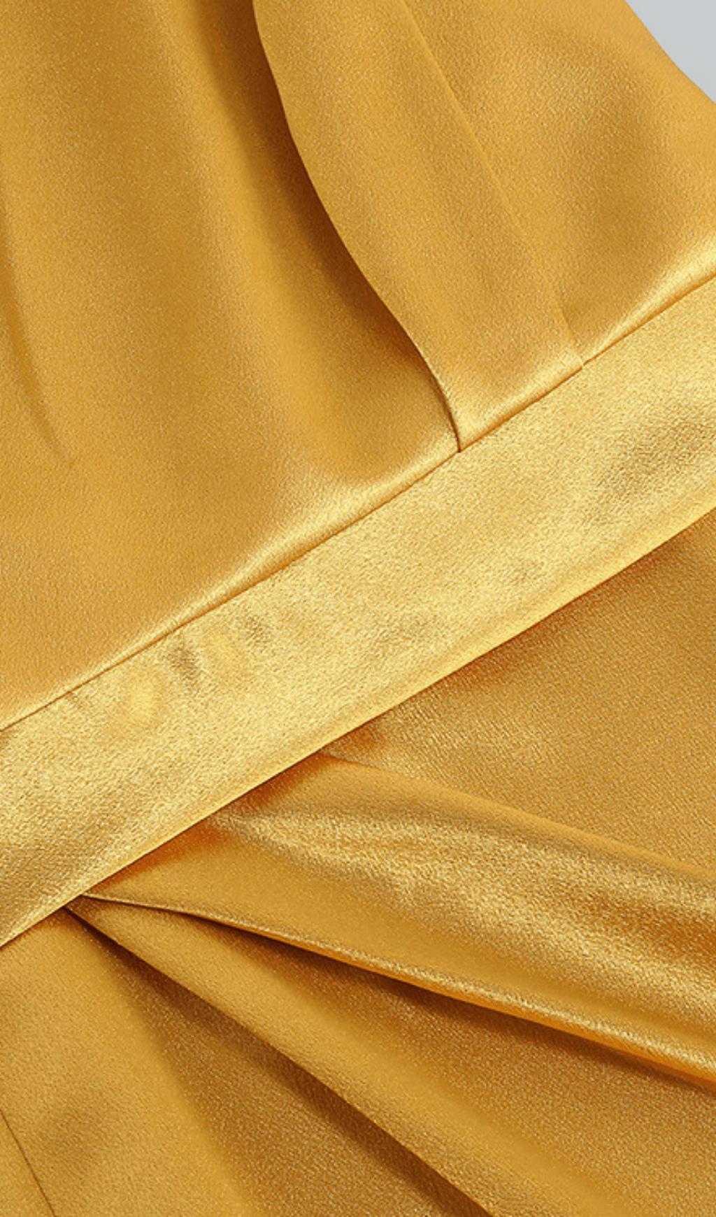 Complete your outfit with a stylish necklace or neckband to enhance the slanted shoulder design of the dress. Choose accessories that complement your personal style and add a touch of glamour to your look.