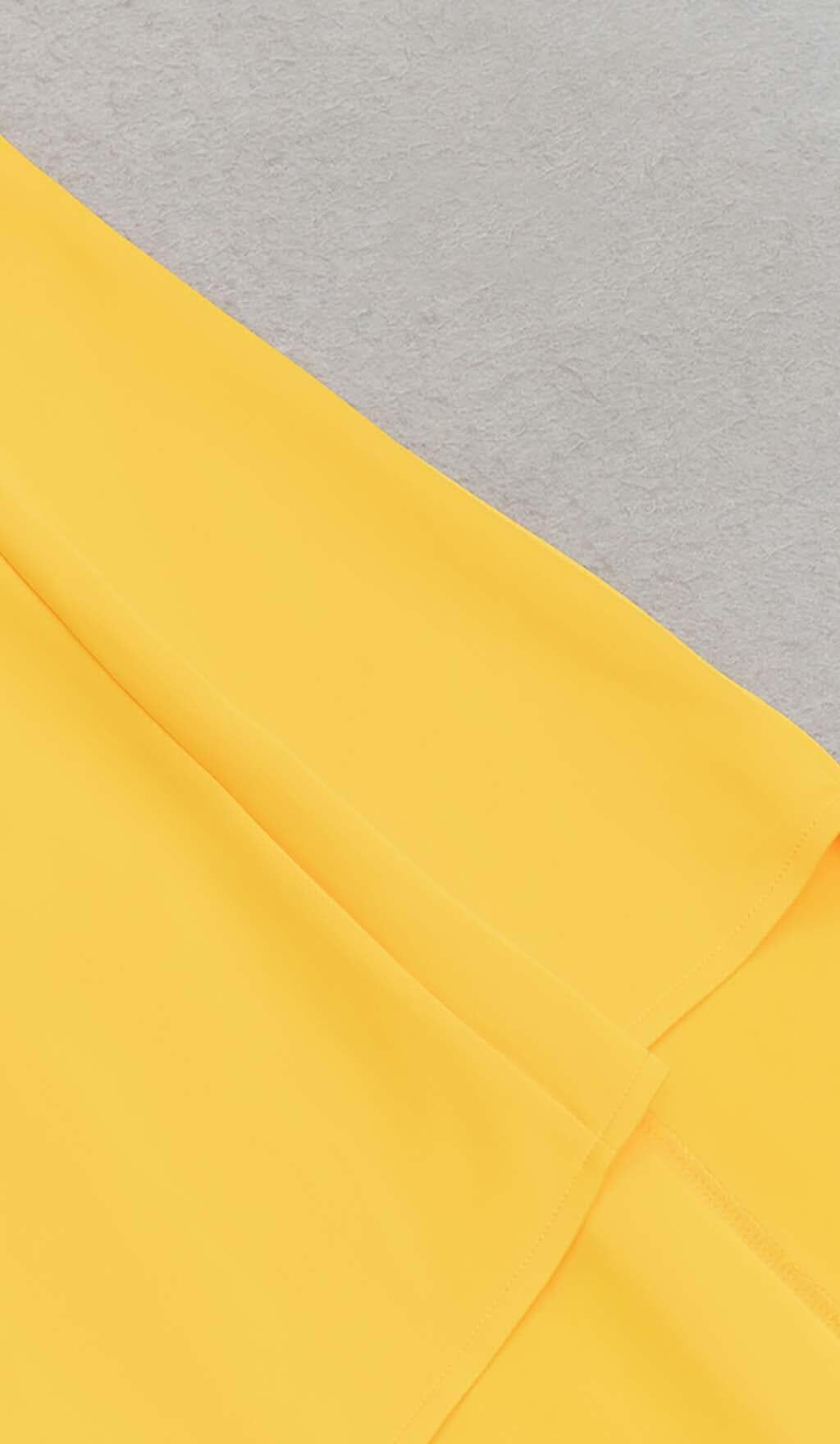 SLEEVELESS BANDEAU HIGH-LOW DRESS IN YELLOW