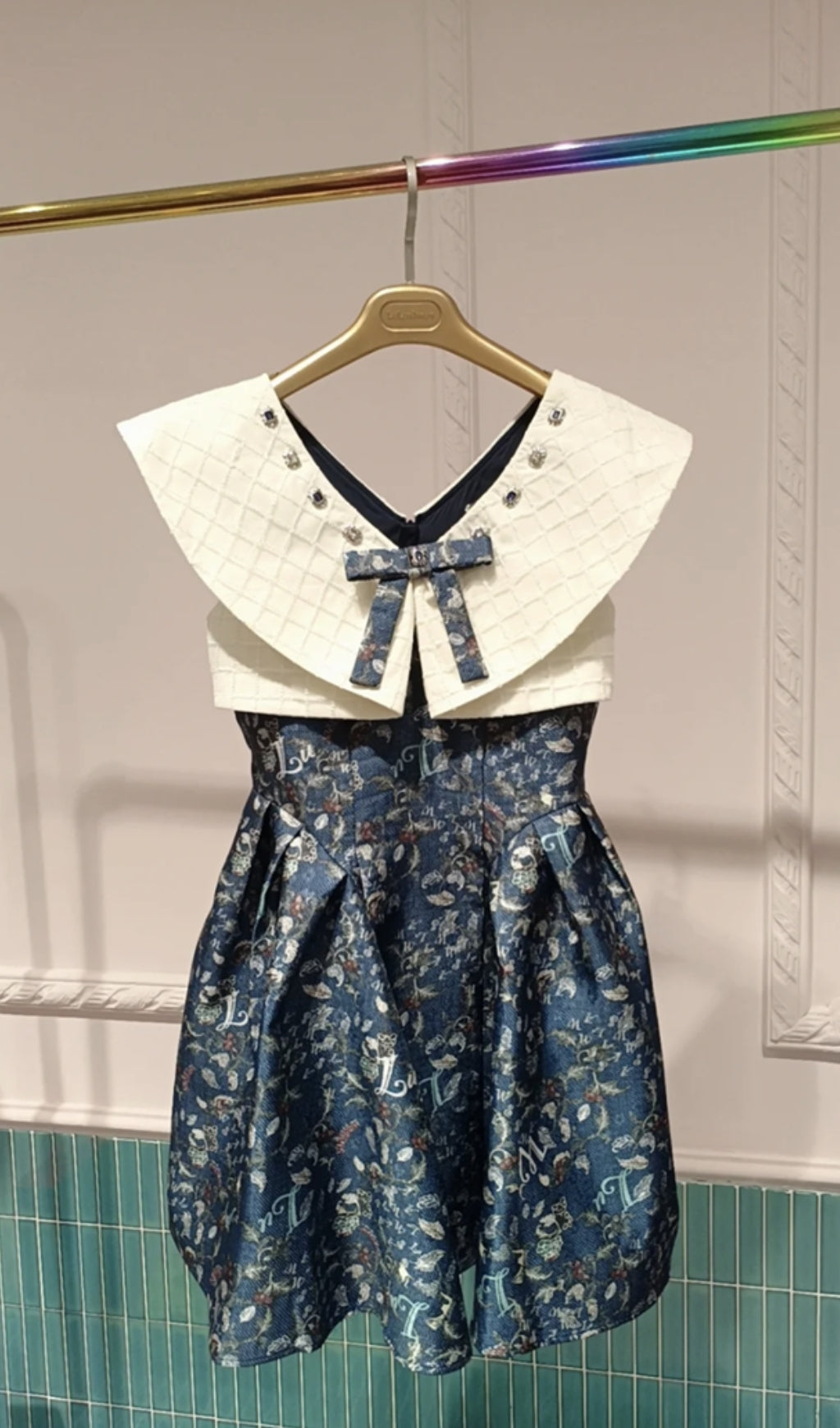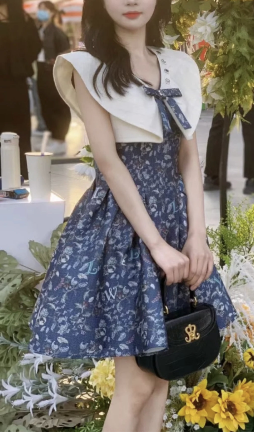 SLEEVELESS BOW MINI DRESS IN NAVY BLUE