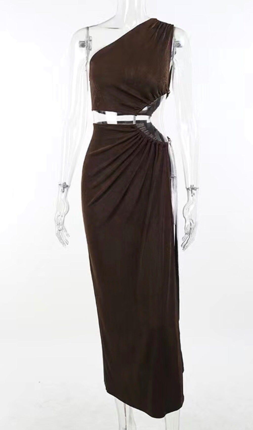 SLEEVELESS HOLLOW SLIT MAXI DRESS IN BROWN