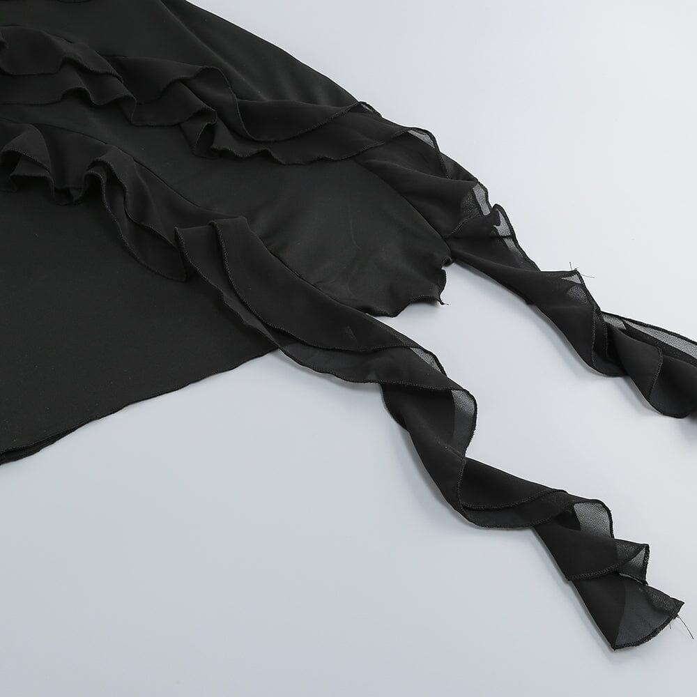 SLEEVELESS LRREGULAR RUFFLE MINI DRESS IN BLACK