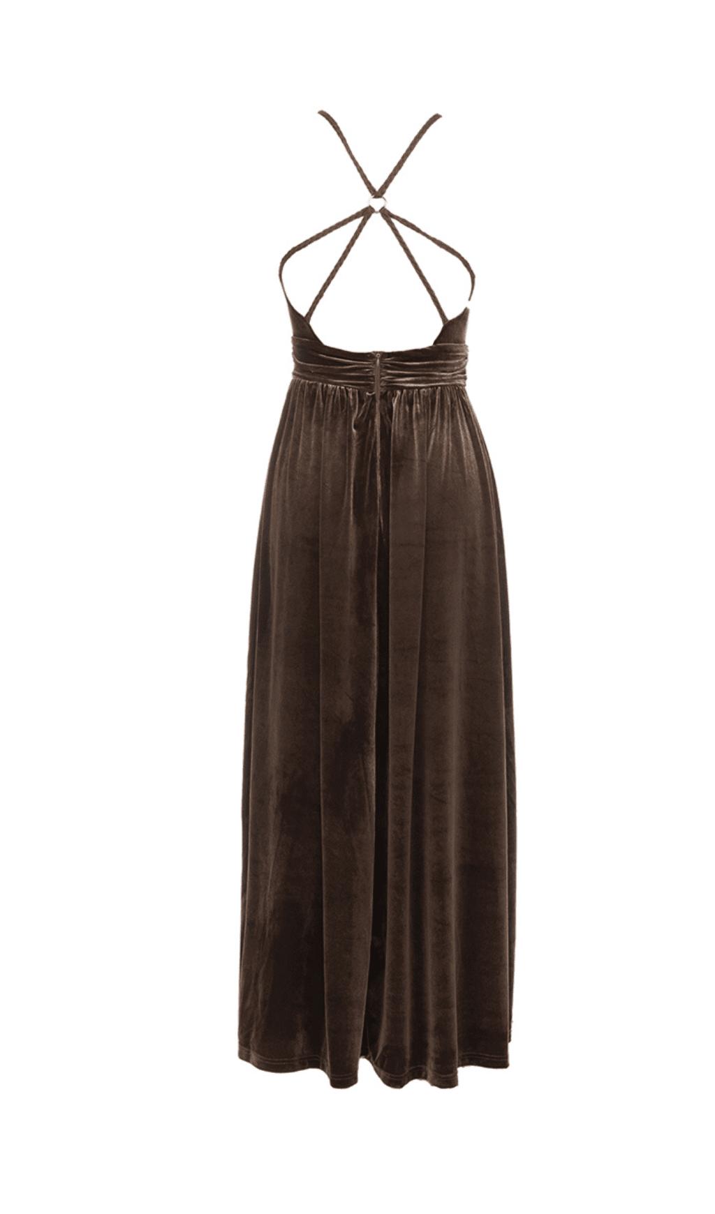 SLEEVELESS OPEN BACK BRAIDED ROPE CROSS DESIGN SUSPENDER MAXI DRESS