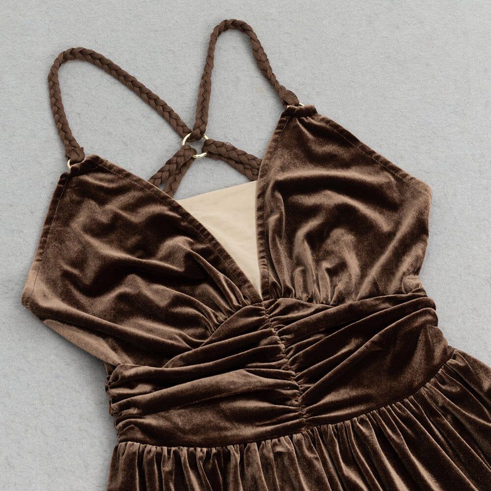 Be a sassy summer stunner in this maxi dress featuring an open back with intricate braided rope cross design suspenders. Get ready to turn heads with your unique style! (Don't worry, suspenders are comfy too!)
