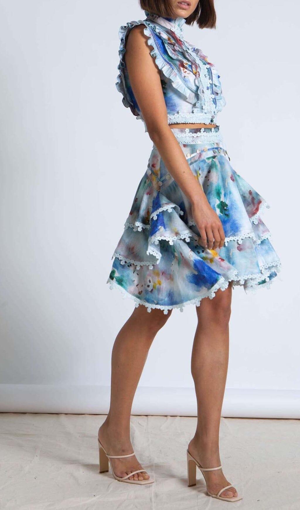 SLEEVELESS PRINT PATTER TWO PIECE SET IN BLUE