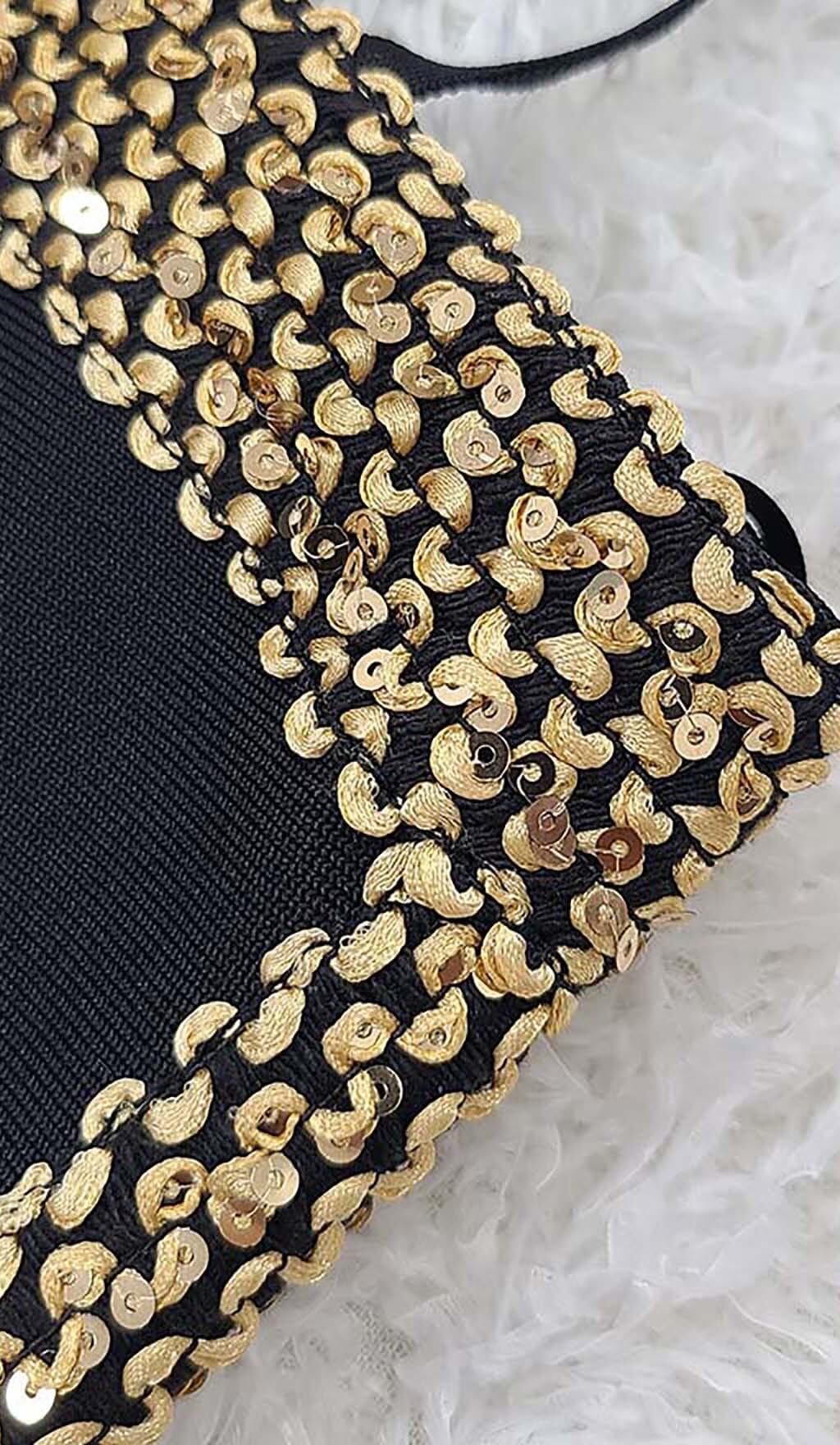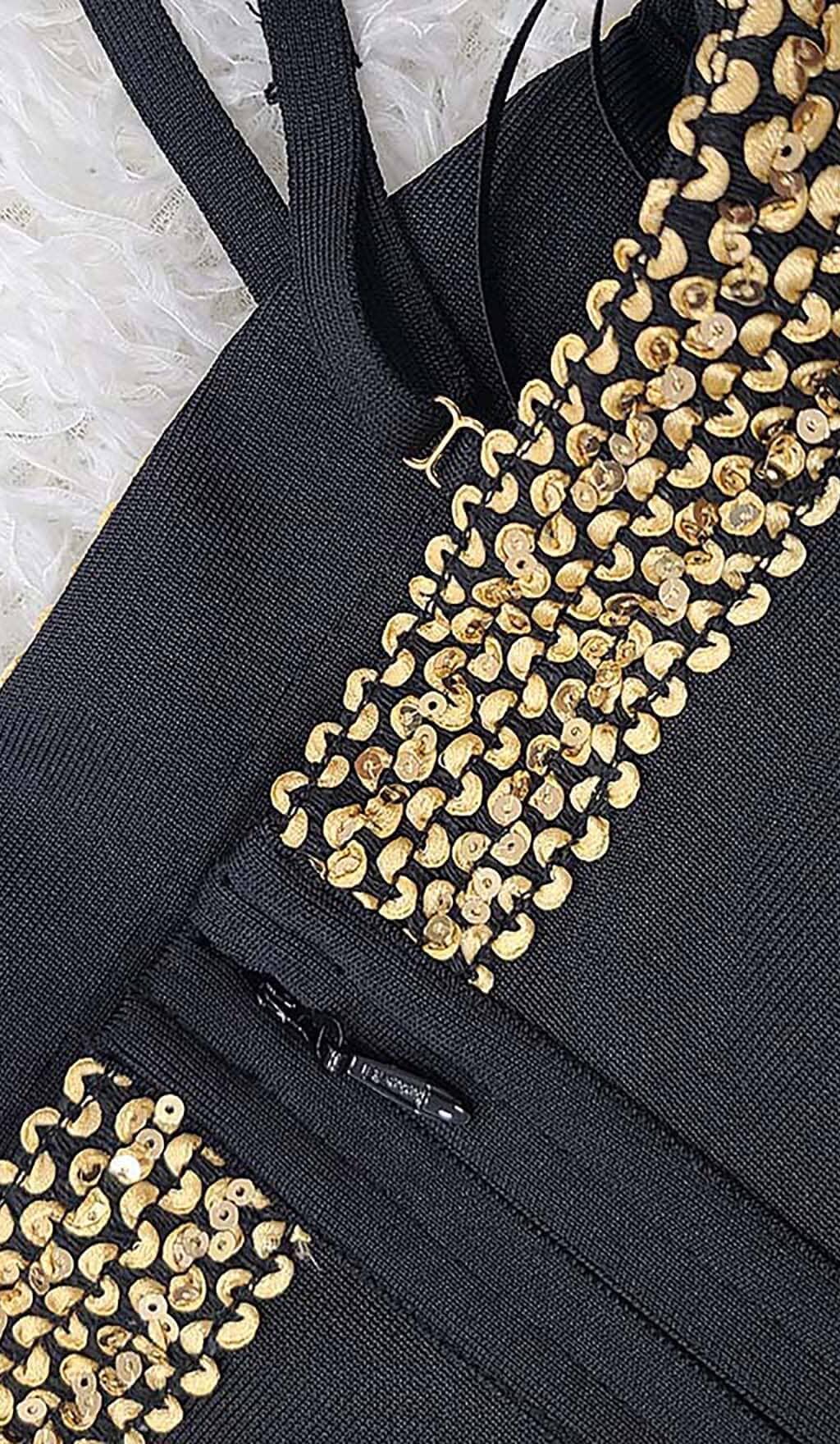 SLEEVELESS STRAP BANDAGE MIDI DRESS IN BLACK