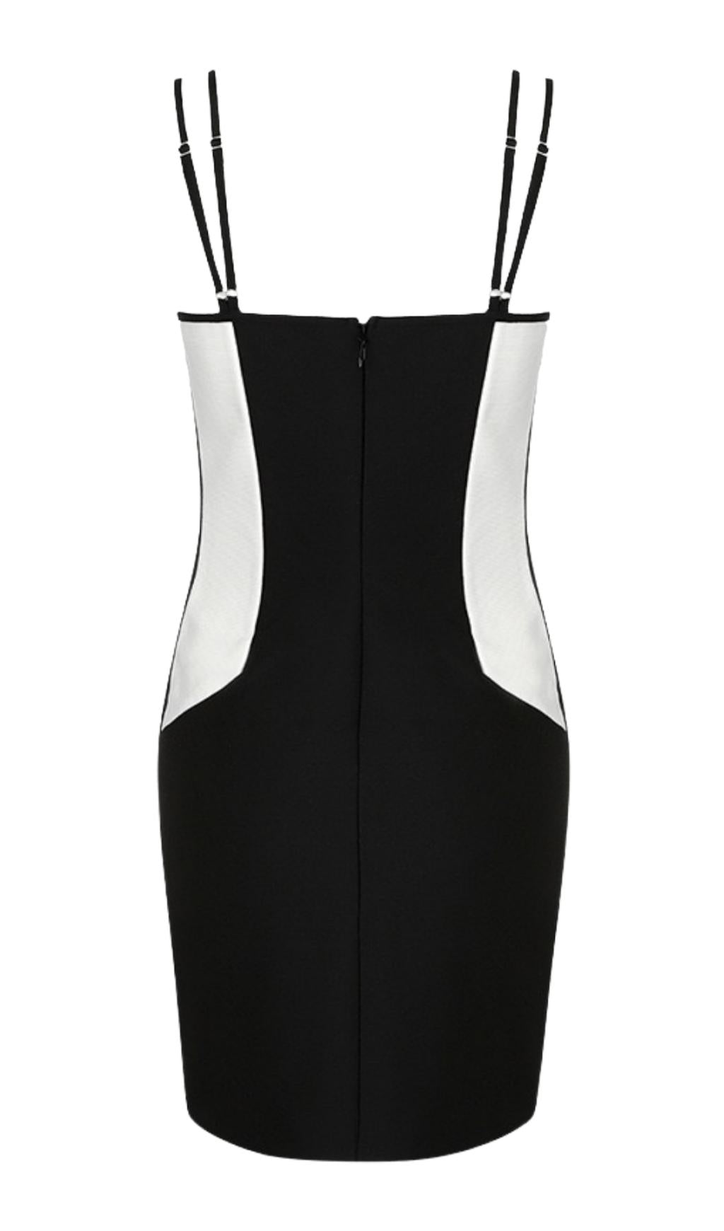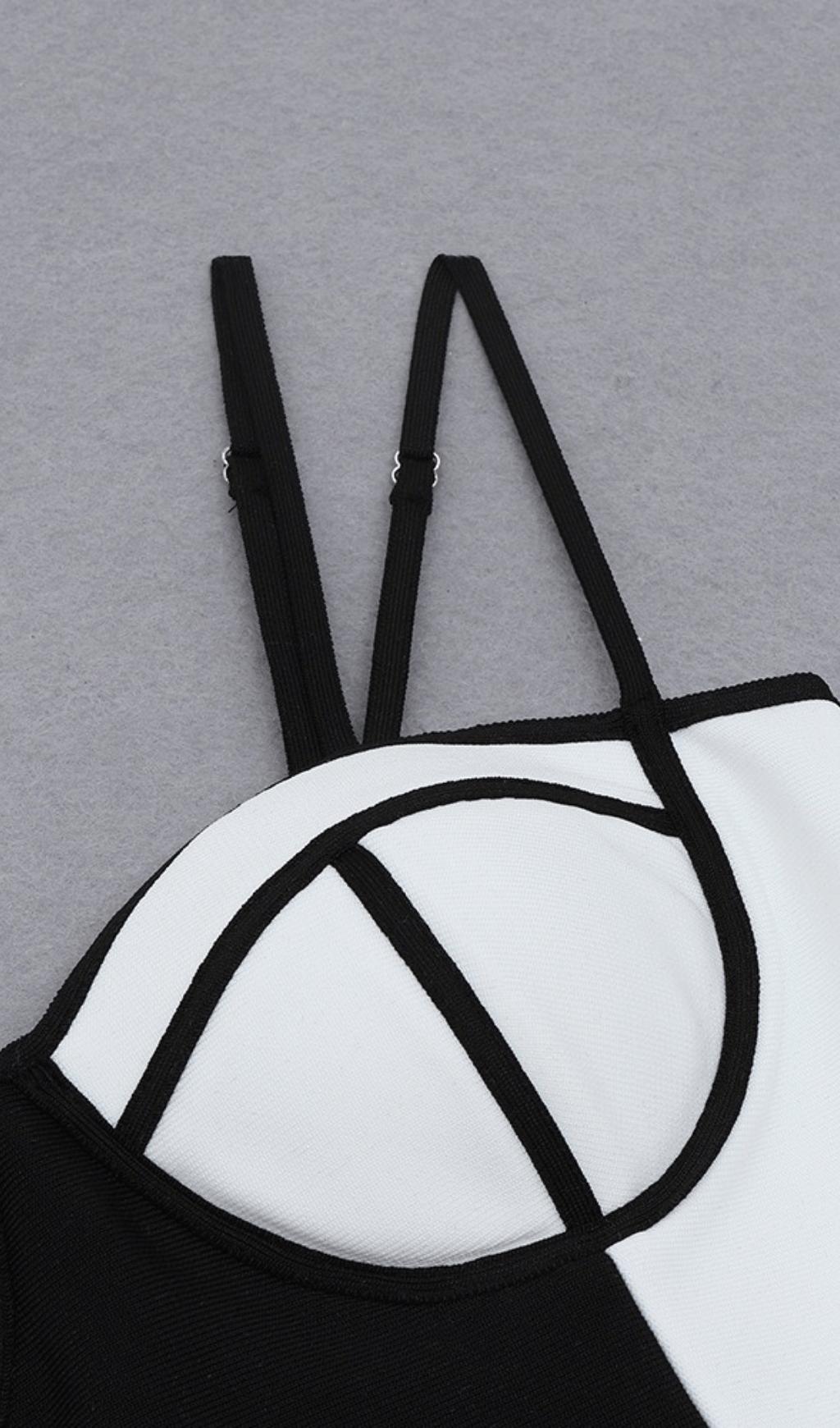 The SLING LOW NECKLINE SLEEVE LAYERED DRESS is a stunning piece that combines style and comfort. With its low neckline sling and unique chest support design, this dress is sure to turn heads wherever you go. The black and white color combination adds an eye-catching touch, making you stand out from the crowd.