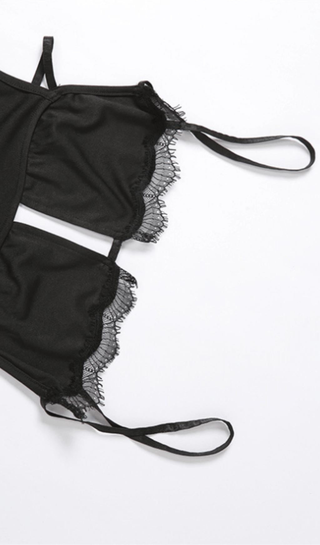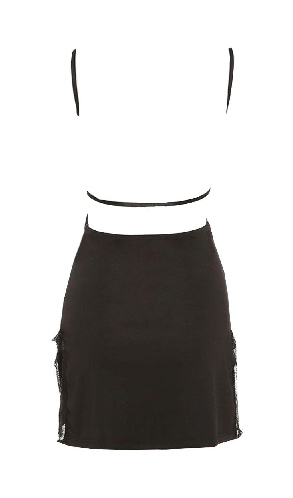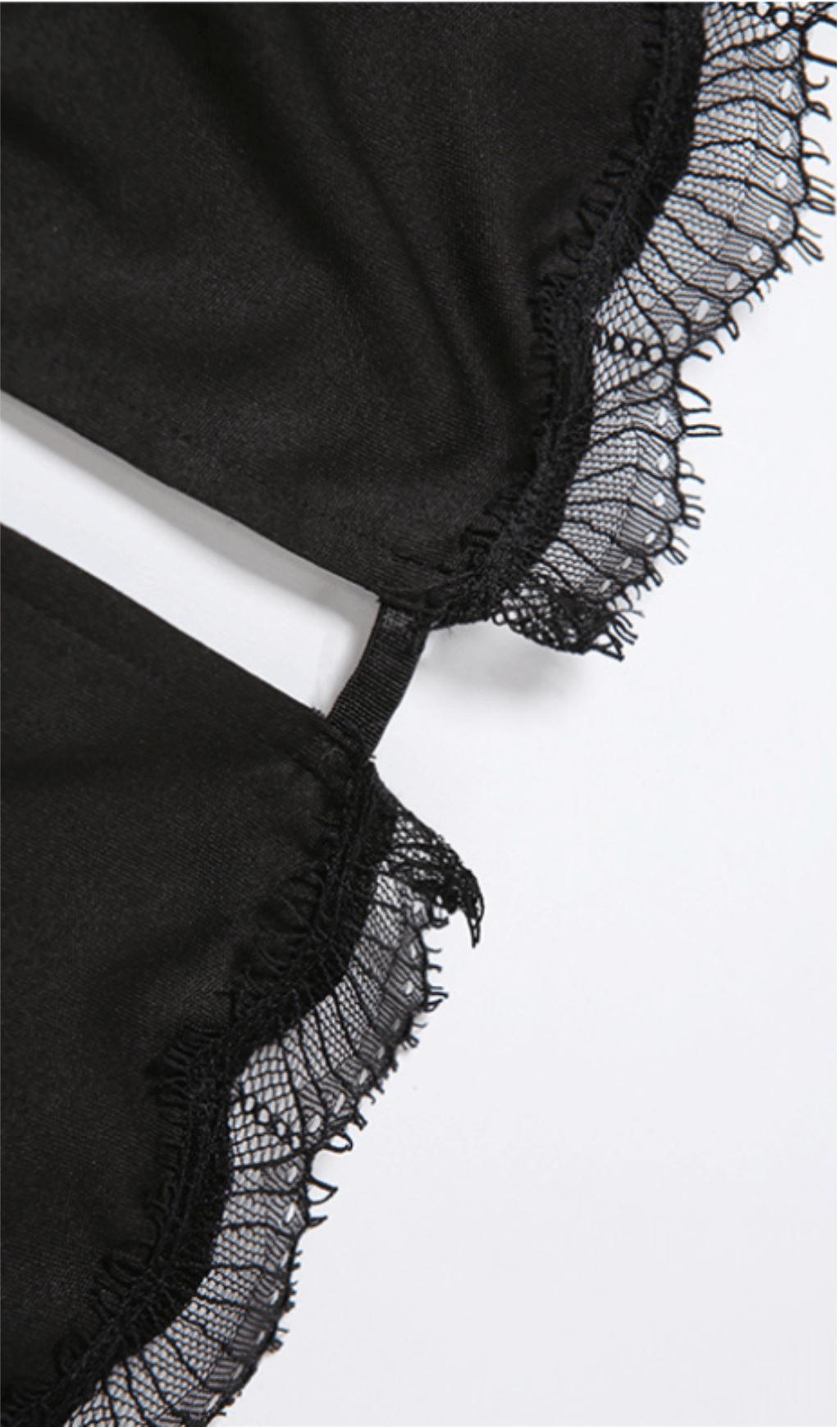 BLACK SLING SHOULDER SLIT DRESS