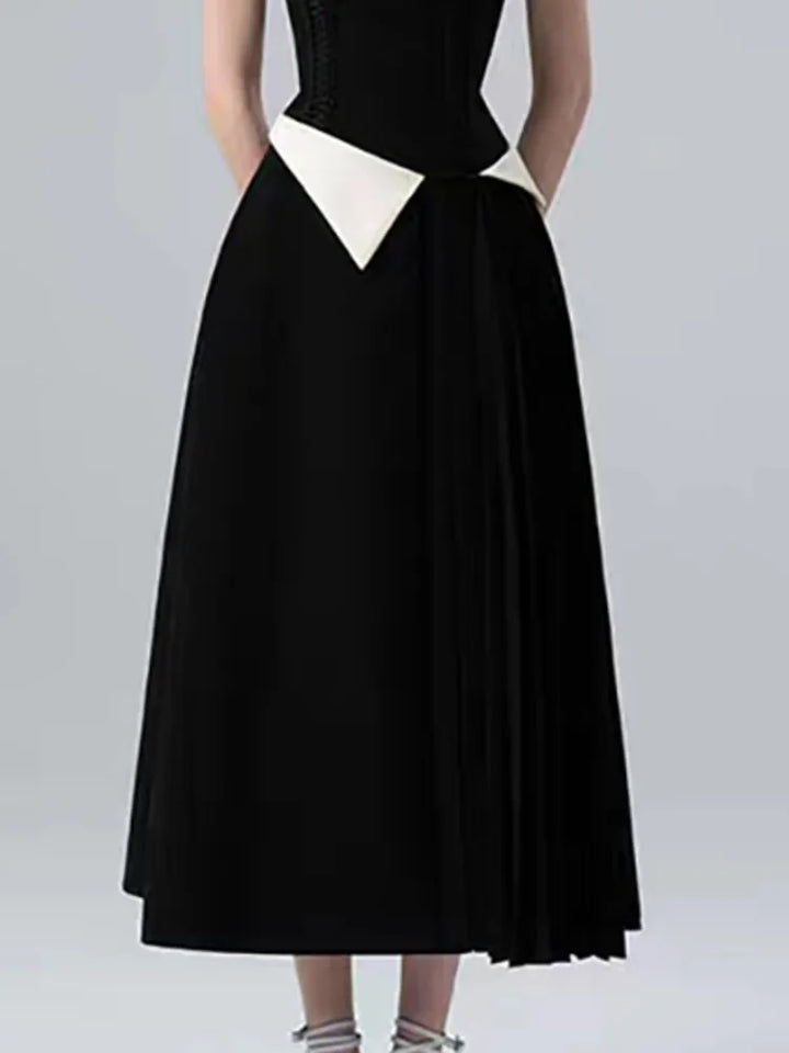 Featuring a bold contrast color design, this dress is both edgy and sophisticated. Slip it on for a night out and effortlessly turn heads with your unique style.