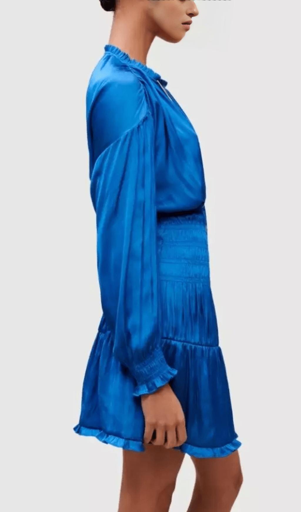 • Drop-shoulder long sleeves, smocked ruffled cuffs