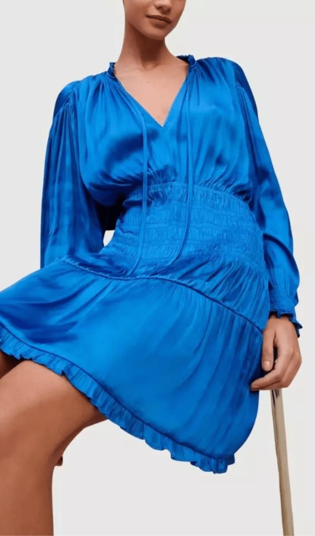 • V-neck, ties and ruffled detail