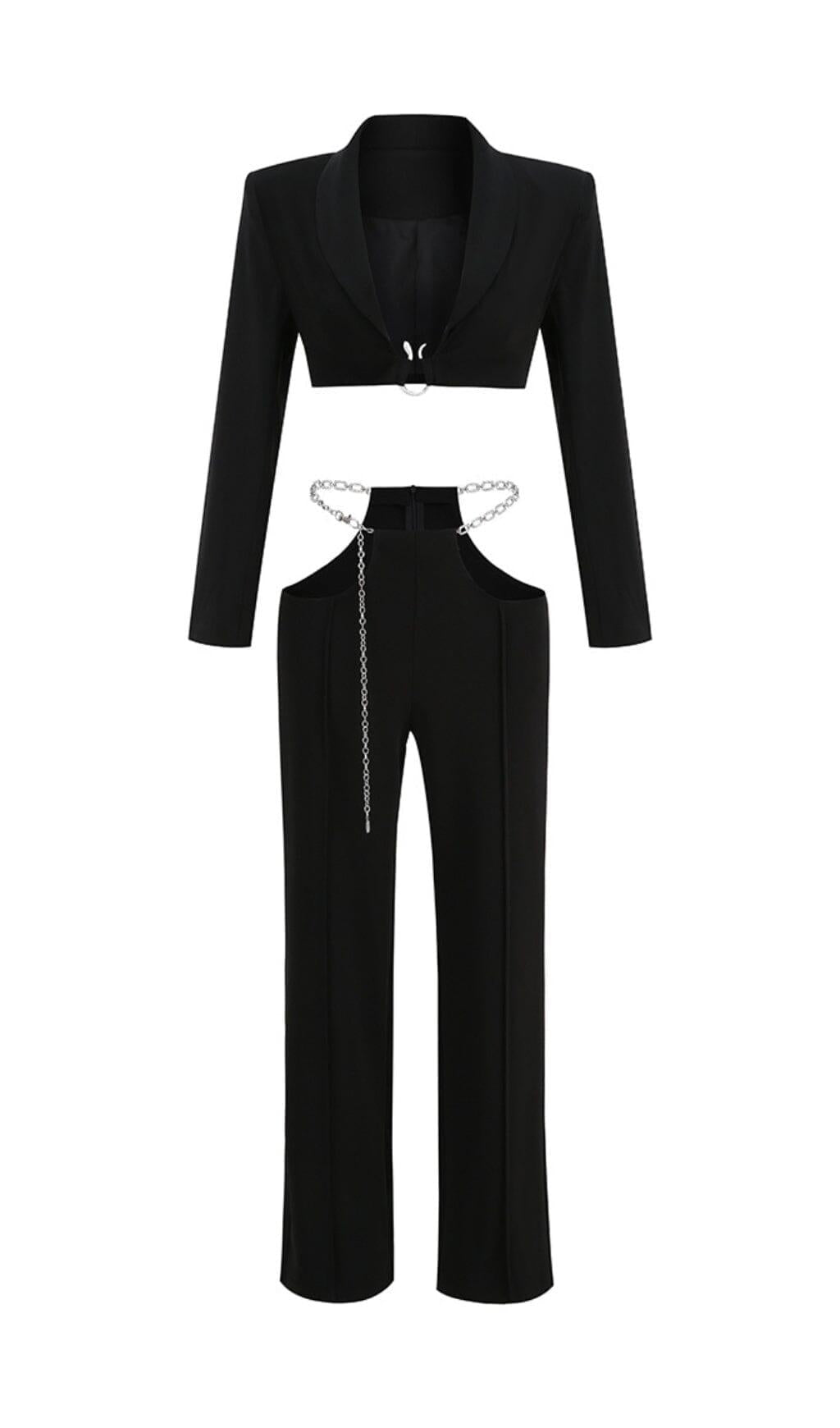 SNAKE BUCKLE WAISTBAND SUIT IN BLACK