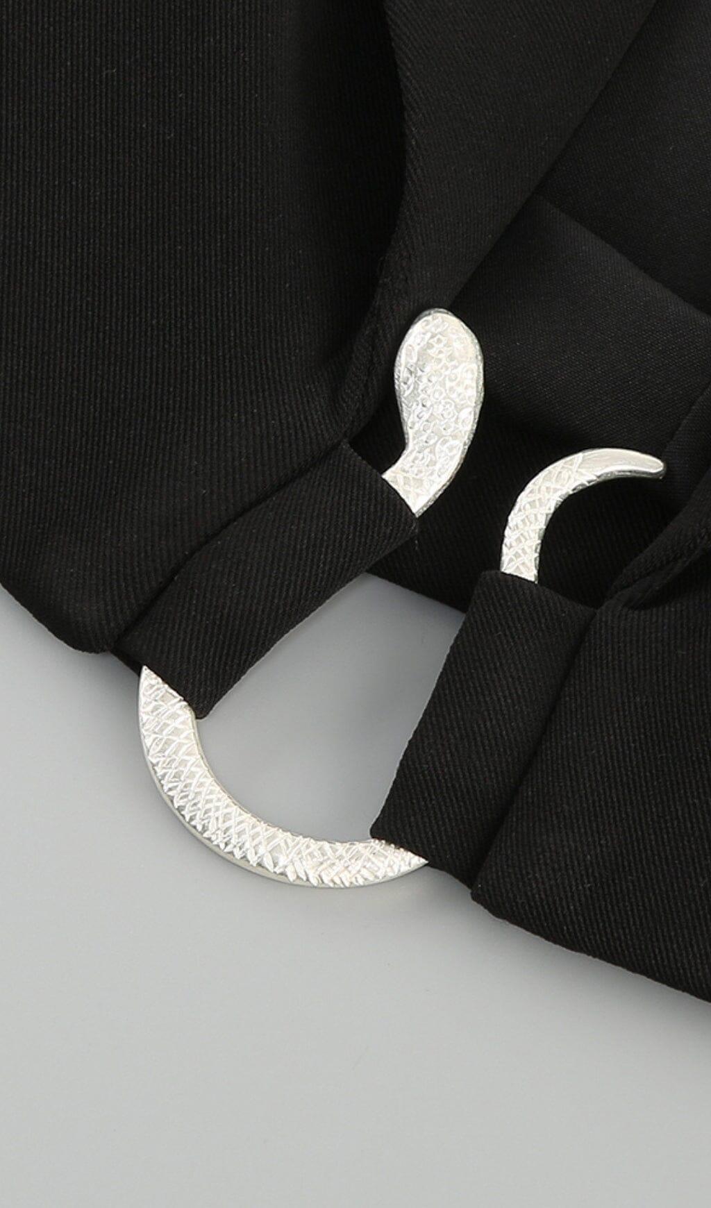 With our Snake Buckle Waistband Suit in Black, you won't need to accessorize much. The suit itself is a walking art, making a statement wherever you go. So why settle for a dull and ordinary suit when you can have a stunning and unique one?