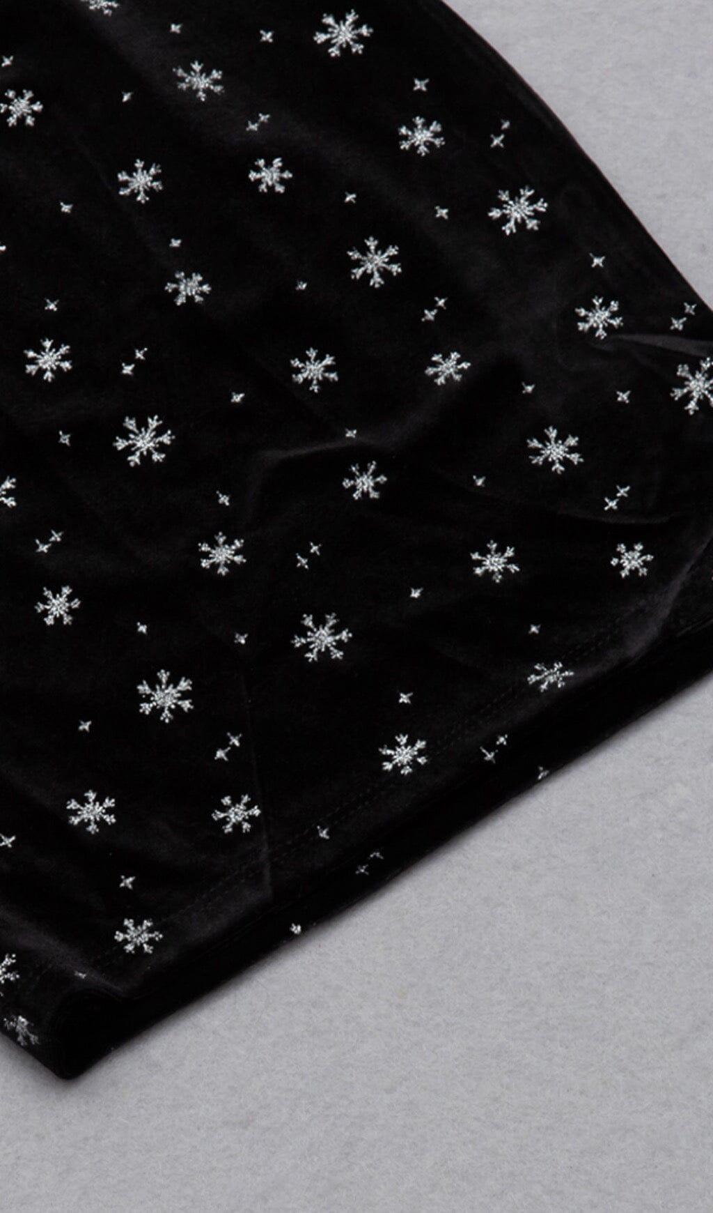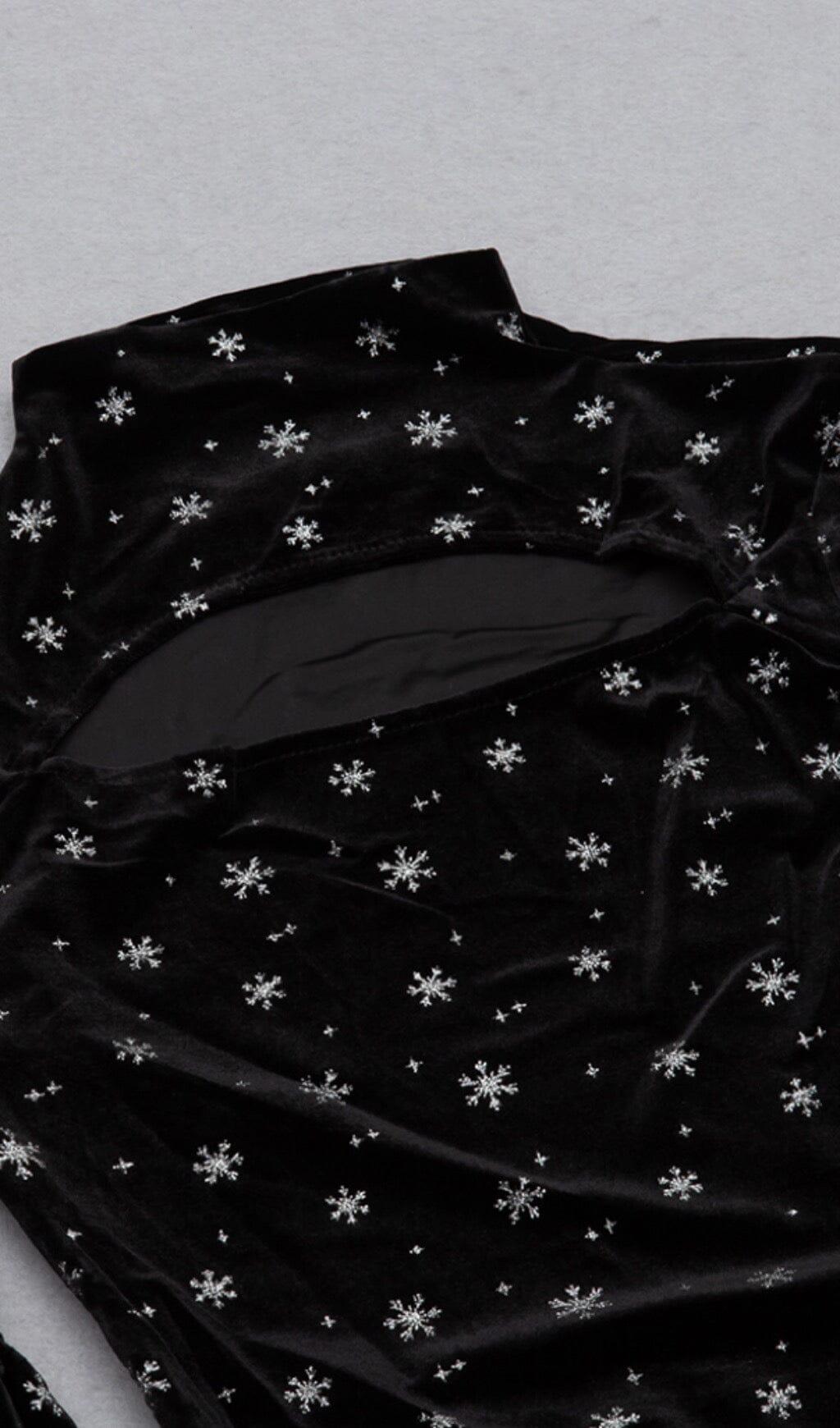 SNOWFLAKE LONG SLEEVE MIDI DRESS IN BLACK