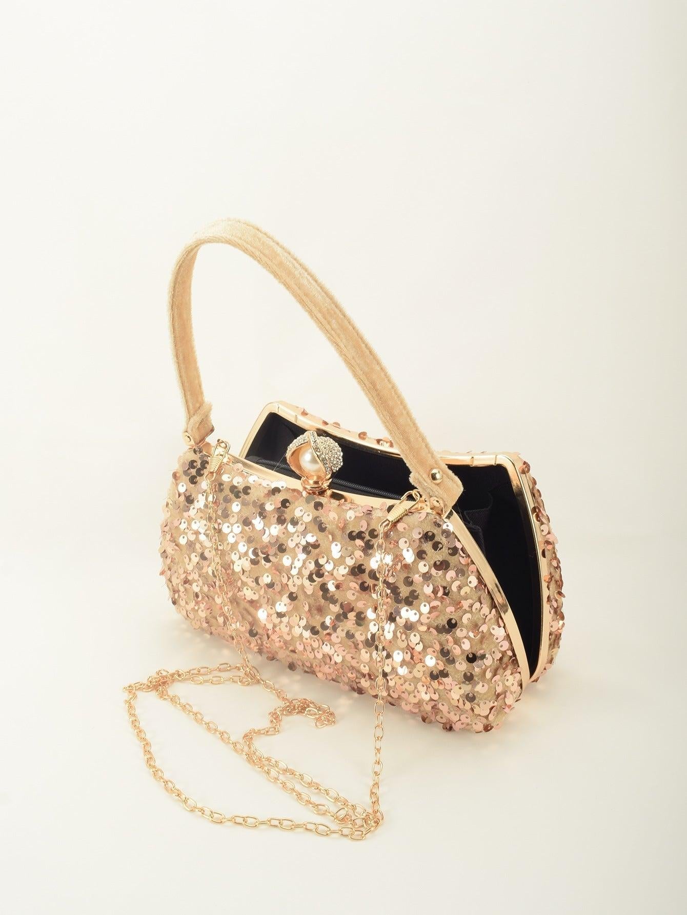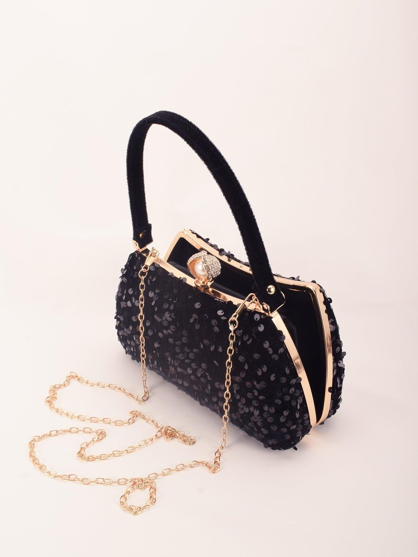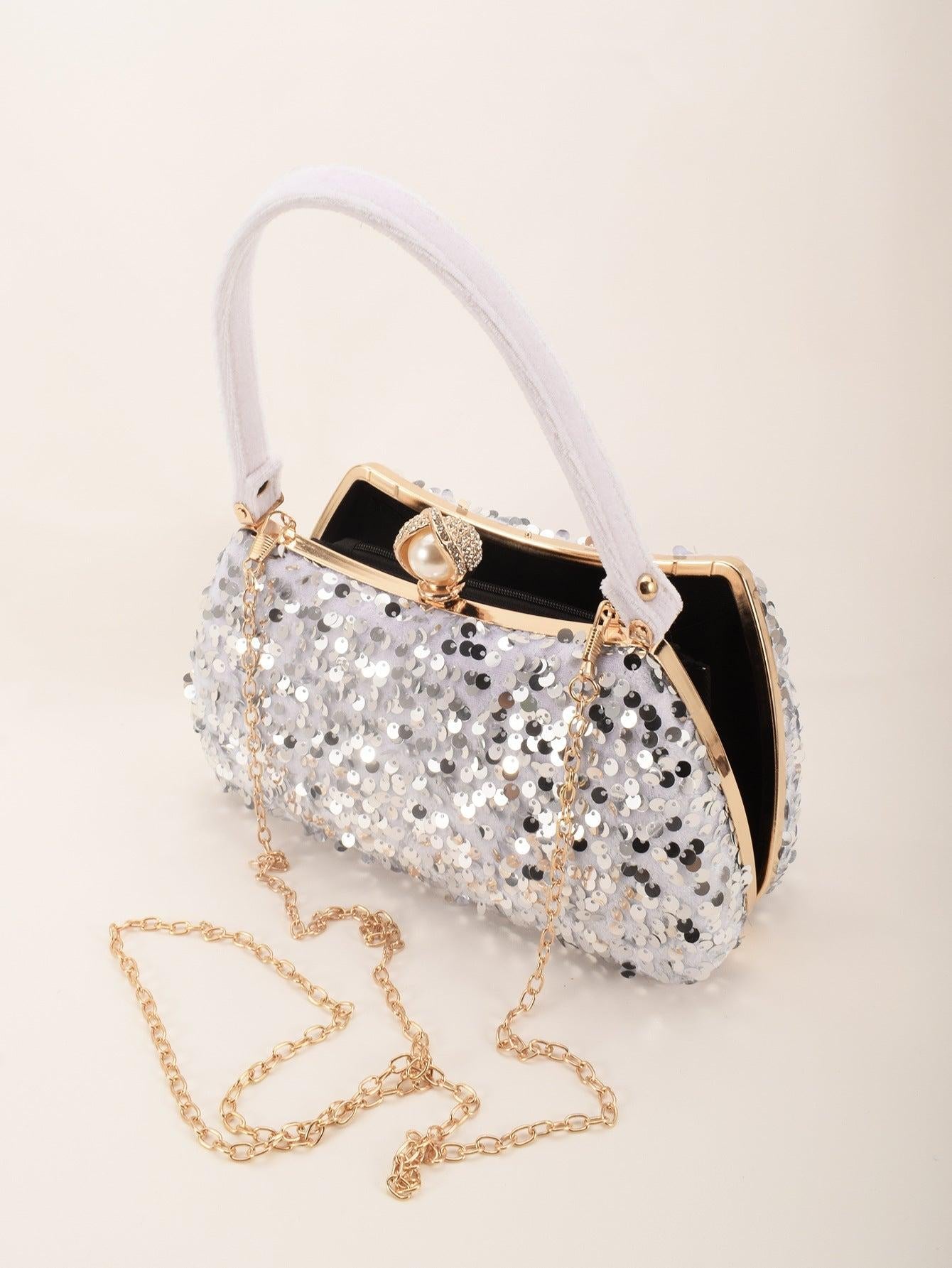 Add a touch of sparkle to your outfit with our Solid Color Sequin Clutch! Perfect for a night out or special occasion, this clutch is not only eye-catching, but also practical with its spacious interior. Get ready to shine with this stylish accessory!