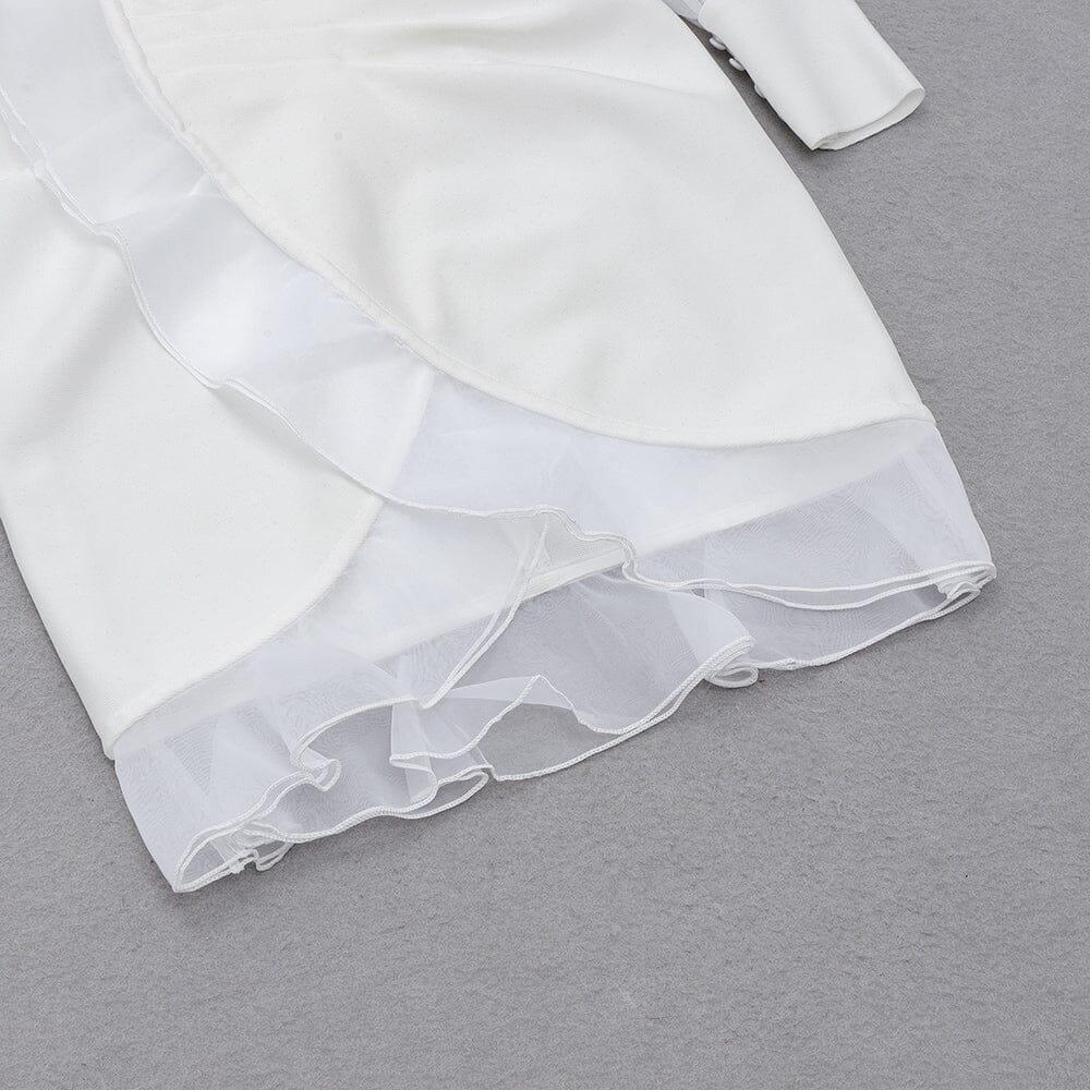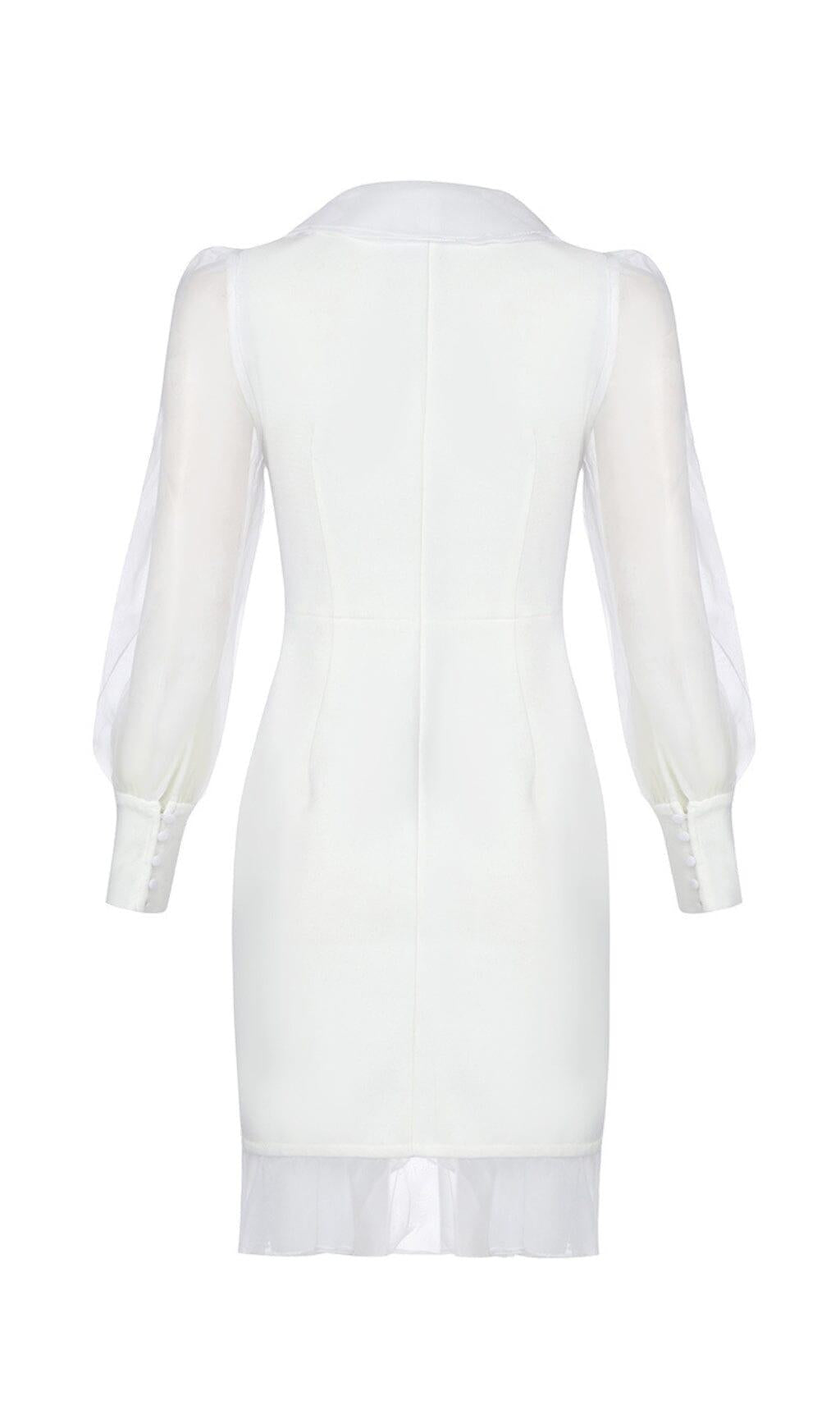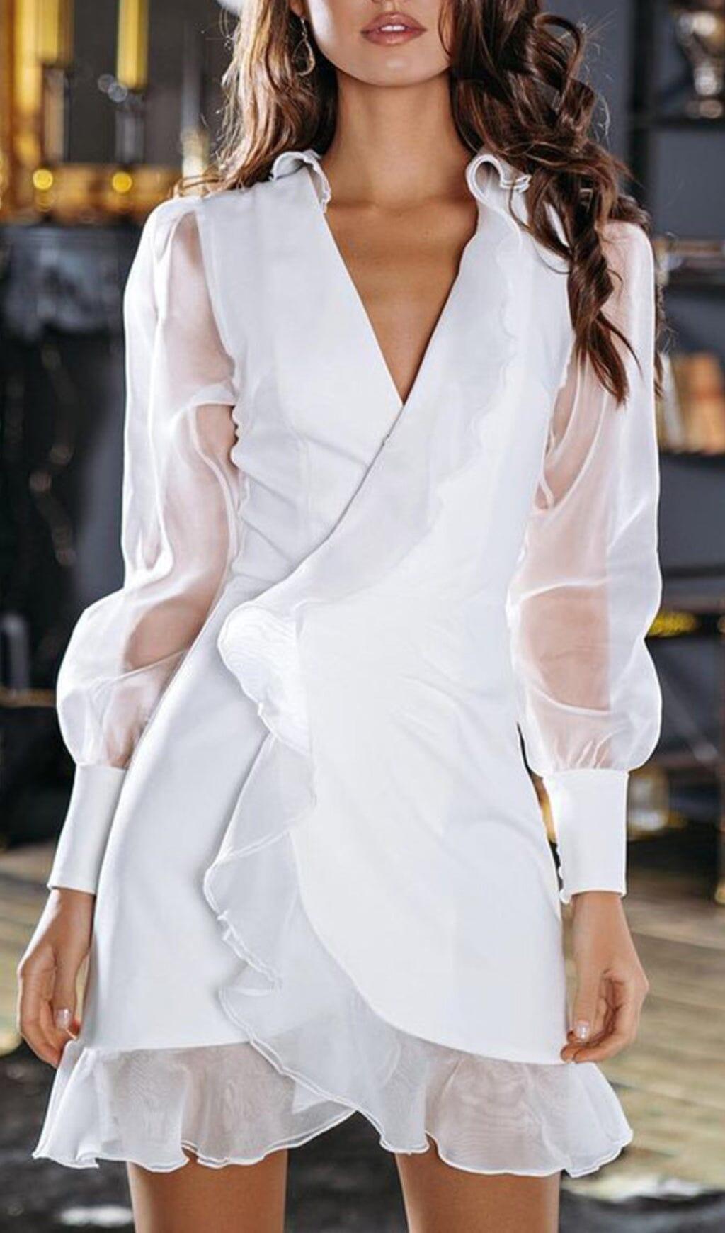 SOLID MESH LONG SLEEVE RUFFLE MINI DRESS