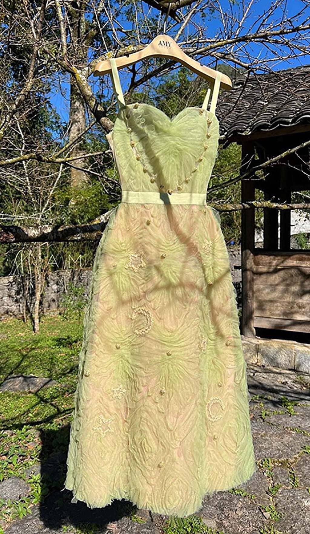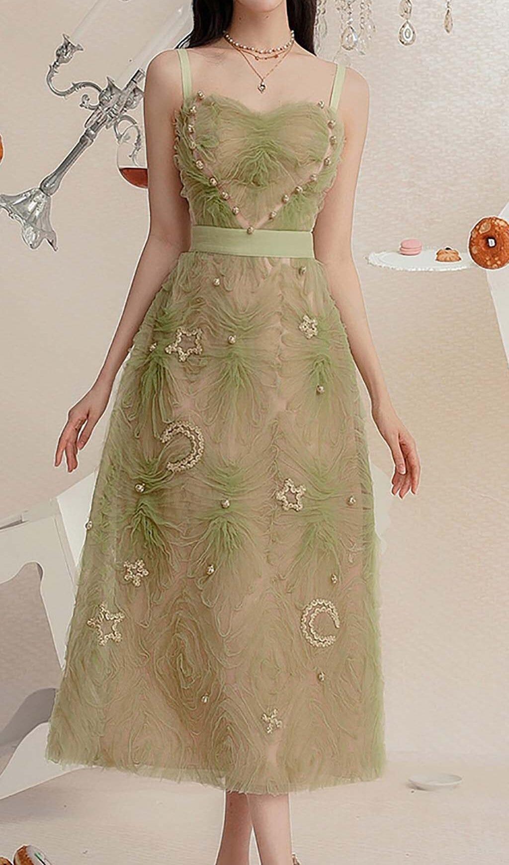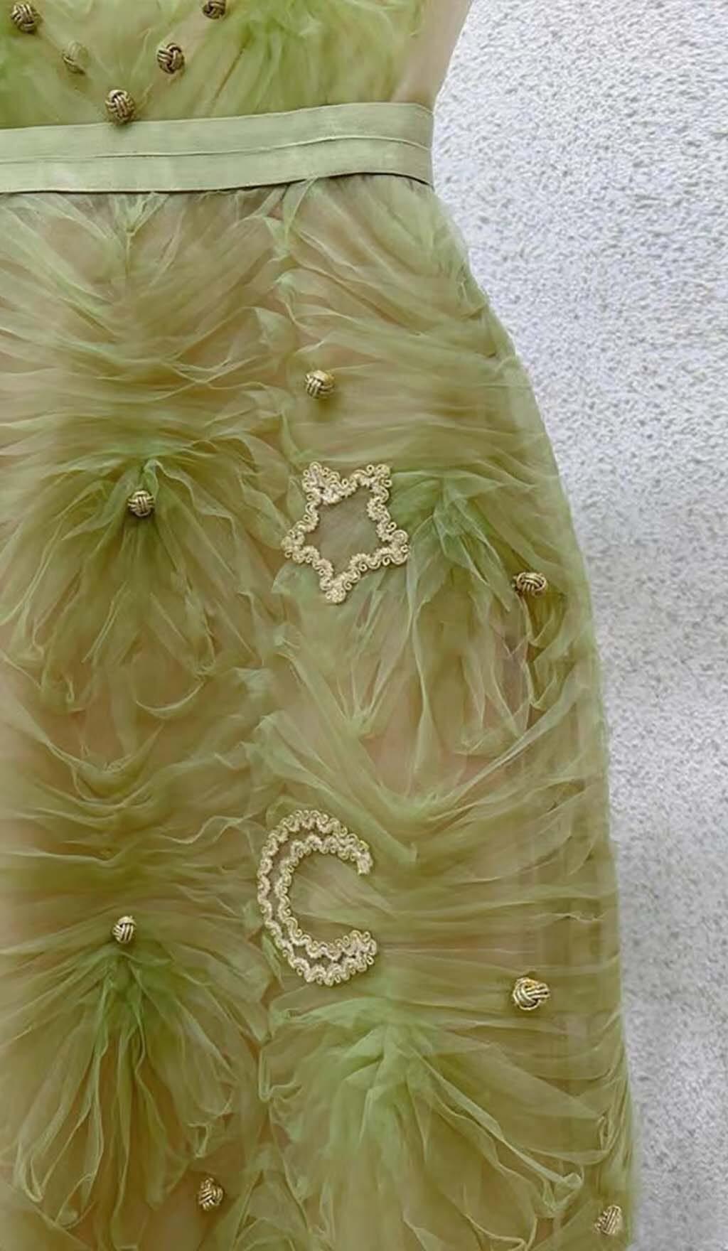 SPAGHETTI STRAPS MESH MIDI DRESS