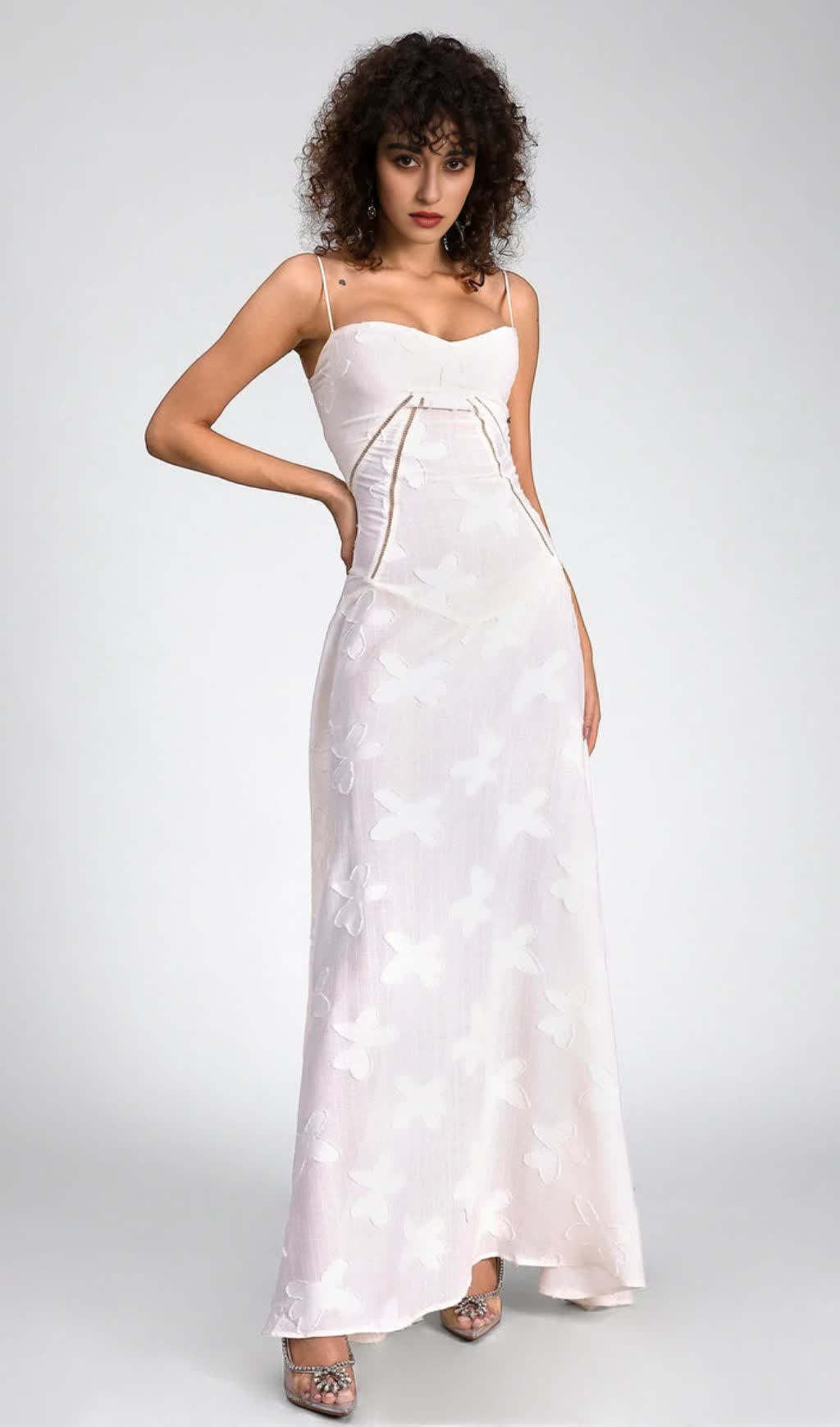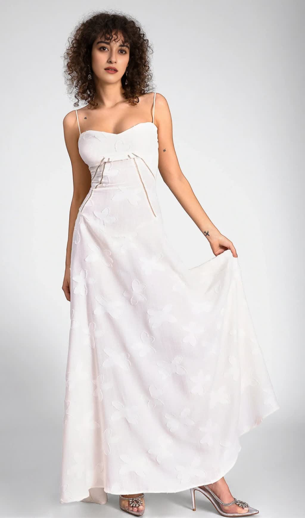 SPAGHETTI WOVEN MAXI DRESS IN WHITE