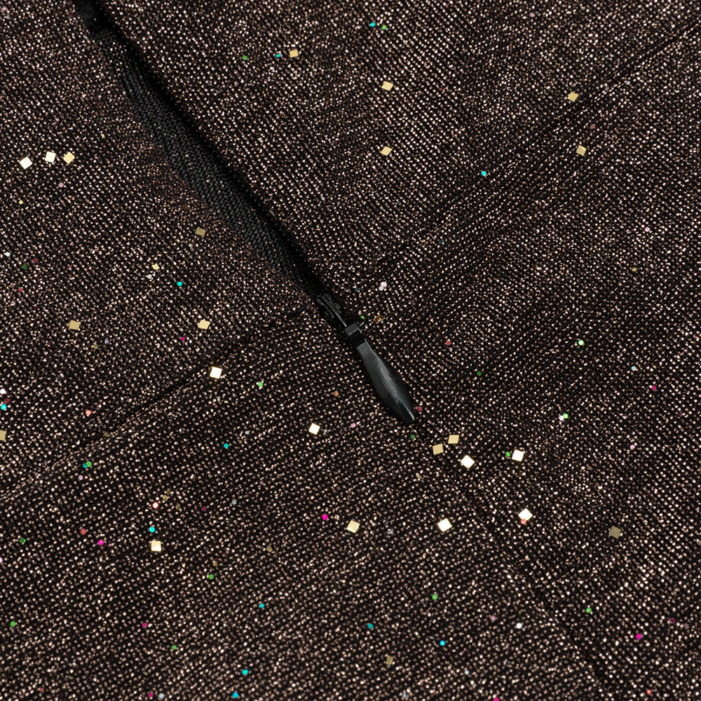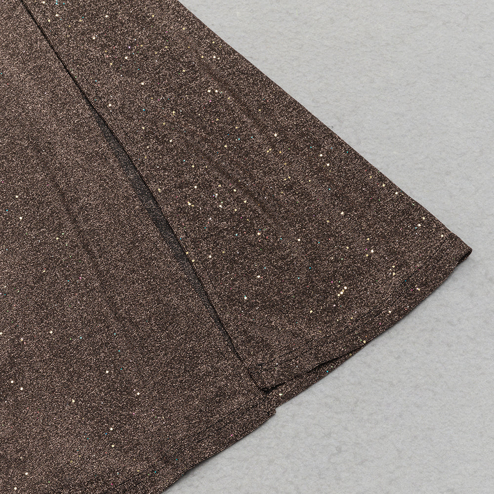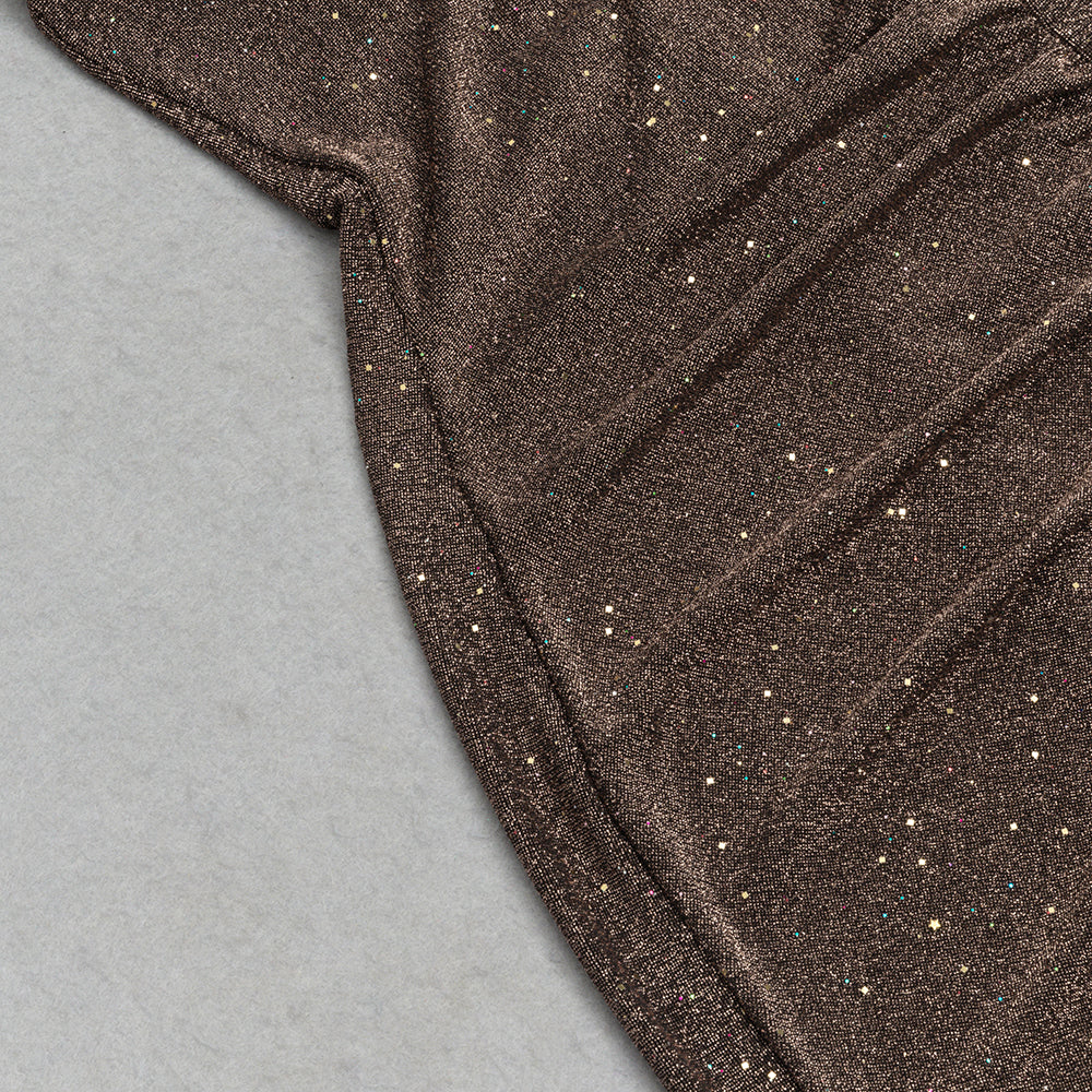 Featuring a bold, high-slit design and eye-catching glitter detailing, this dress will have you shining all night long. With its comfortable fit and stunning silhouette, it's the perfect choice for any special occasion.