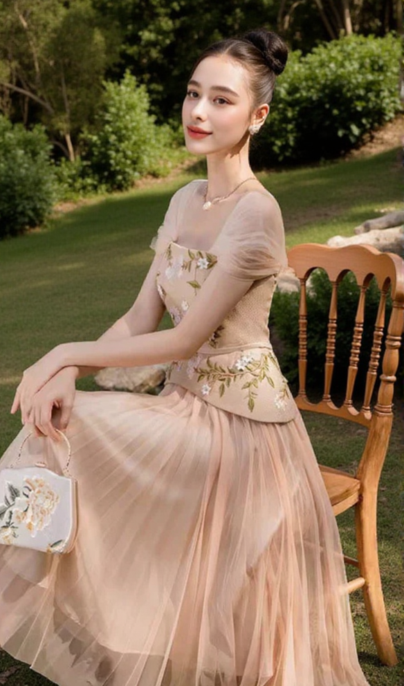 This Embroidered flower midi dress in apricot features a unique square collar that adds a touch of quirkiness to your outfit. The embroidered flowers make it perfect for any occasion, whether day or night. Get ready to stand out in this playful and stylish dress!